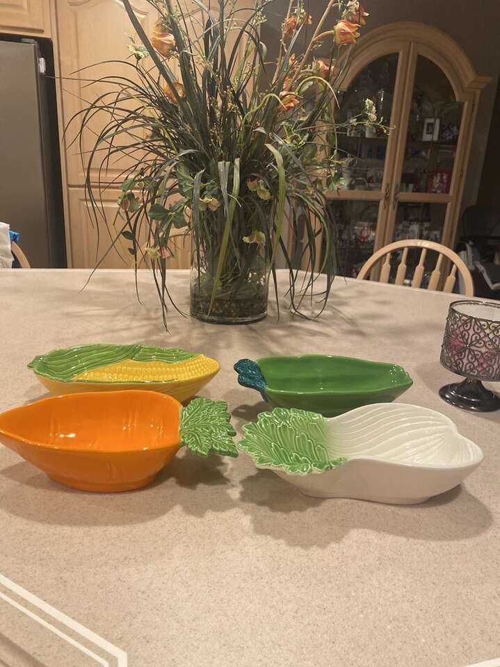 Perfect beautiful glass vegetable dishes. Approximately 10” X 5 1/2”. Perfect condition go as a set