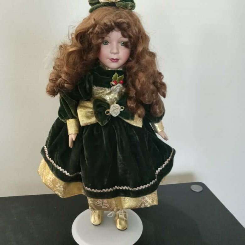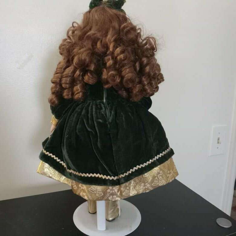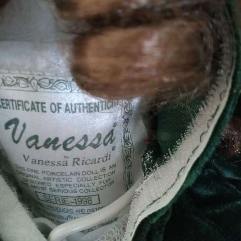 Collectible Vanessa Doll by Vanessa Ricardi Porcelain Doll Series 1998. Gold/Green Dress. 16.5H