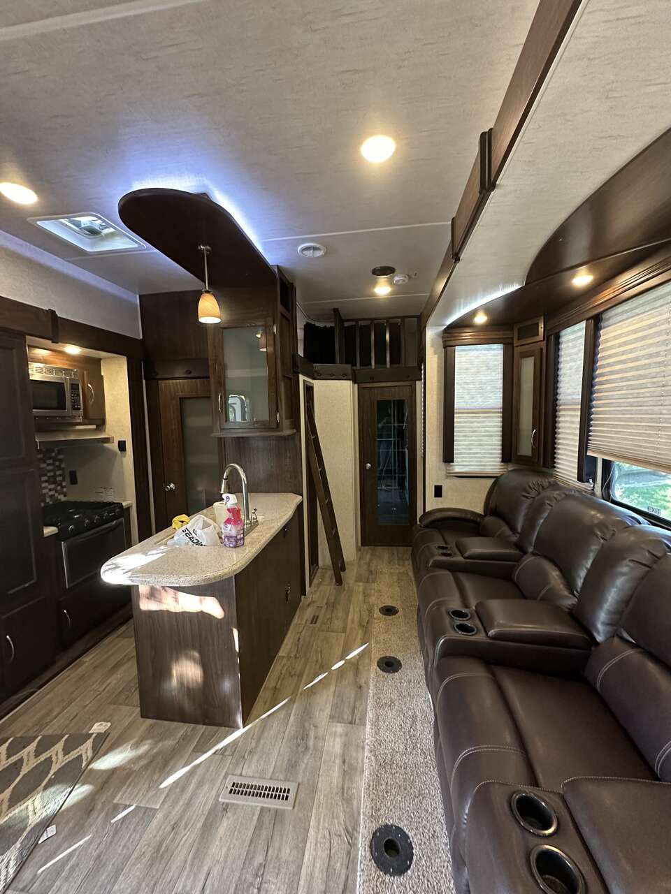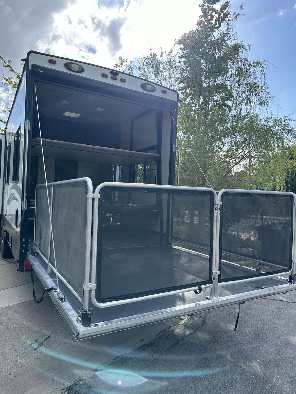 ApplePay$150 night if rented for 7 days or longer! Discount for weekly/monthly rentals. Delivery upon request. Cleaning or dump fees can be applied. Looking to go on your next adventure with the kids and Fido, but the wife is making you bring the in-laws? Say no more! With two full bathrooms, everyone can stay comfortable and peaceful. With a spacious master and king size bed in the front, and electric pull down beds and table in the rear, everyone can be happy! With 13’ of garage space and luxury living, 106 gallon fresh water tank and 30 gallon fuel station, you can bring all of your toys. Little Sahara, Flaming gorge, Sand Hollow, Lake Tahoe, Bear Lake and so much more around us, why wouldn’t you go on a trip? Take a step onto the party deck with a fully electric awning and kick back with a drink, or leave the in-laws on it while you go for a ride! Kiddos need somewhere to sleep? The loft is cozy and big enough to sleep more than two, so you can have your adult time. If the kids are bored, put on a movie and watch it on the 52” flatscreen tv while reclined the movie quality sofas, with or without the surround sound! While relaxing, retract that side awning and kick back with some music on with the outdoor speakers and led lighting! When it gets uncomfortable outside, turn on the a/c or furnace, which is equipped with a double ducted unit so every part of the trailer is comfortable. This trailer has everything to offer including microwave, large fridge, oven and cooktop, actual pantry, two bathrooms, theater seating, two awnings, party deck, outdoor shower, fuel station and more. You will get to enjoy the outdoors while still being comfortable. Delivery is available if needed. Pet friendly
