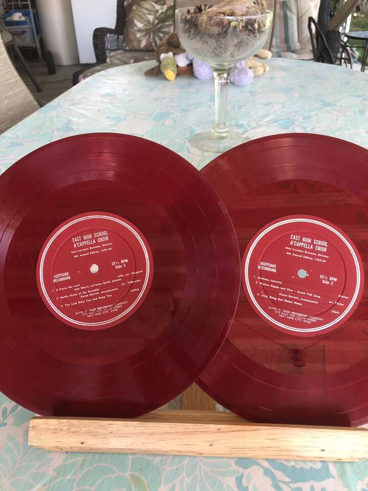 Records of East High School A’Cappella Choir for 1955-1956. These are early 10” 331/3rpm records. Cash only. No codes or scammers.
