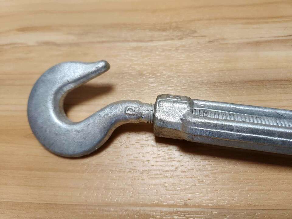 Turnbuckles hook and eye size 1/2 inches x 9 Drop forged. Hot galvanized. Drop forged. Drop forged.