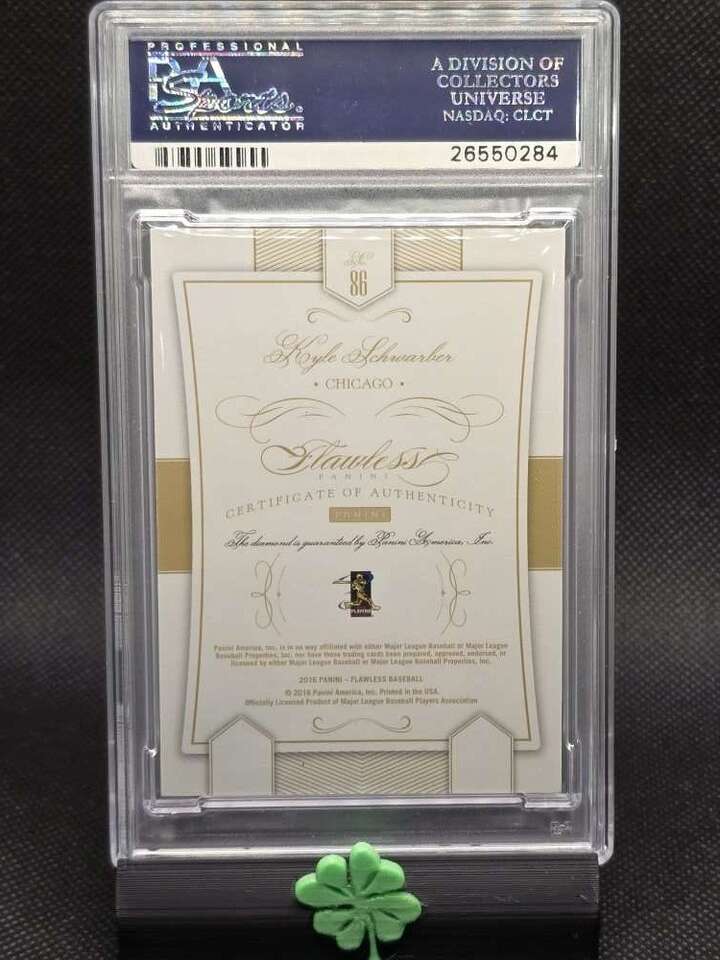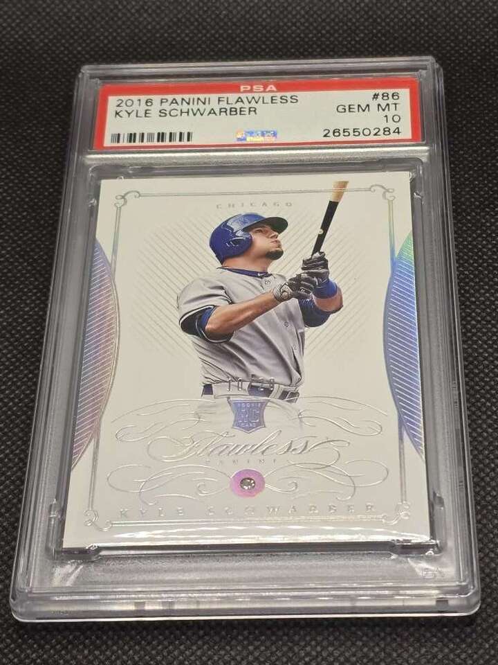 Kyle Schwarber 2016 Panini Flawless Gem Mint Graded PSA 10 Diamond 10/20 Rookie Card. This is the only 2016 Panini Flawless graded a Gem Mint 10 by PSA. Pop 1.