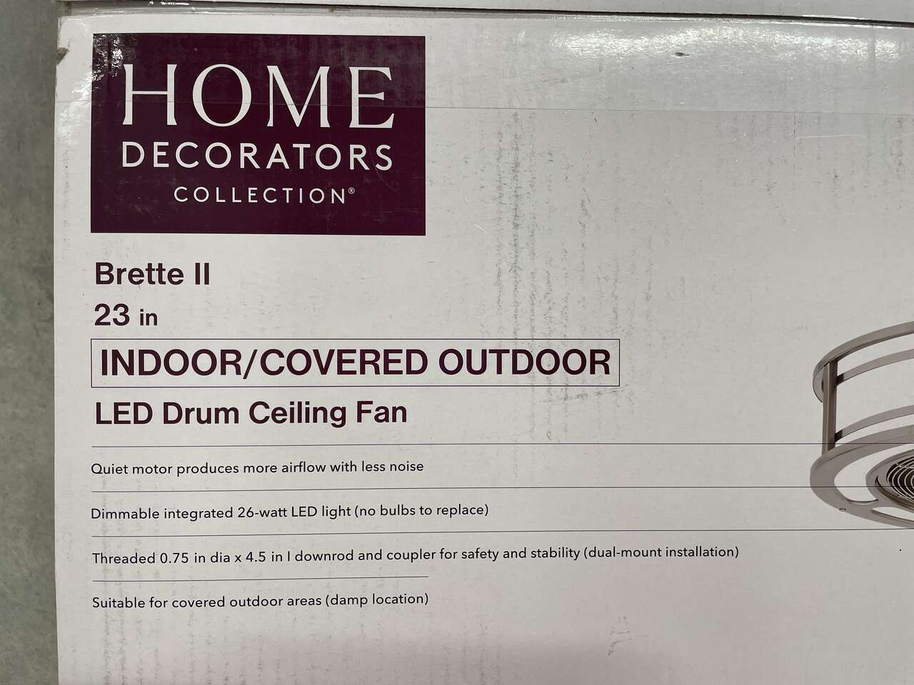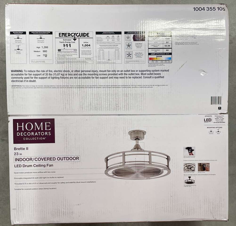 Up for grabs is a NEW Home Decorators 23" Brette II Indoor/Covered Outdoor LED Drum Ceiling Fan.