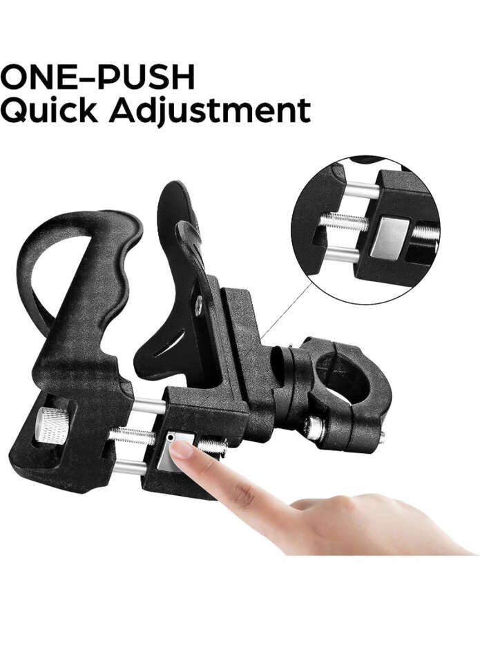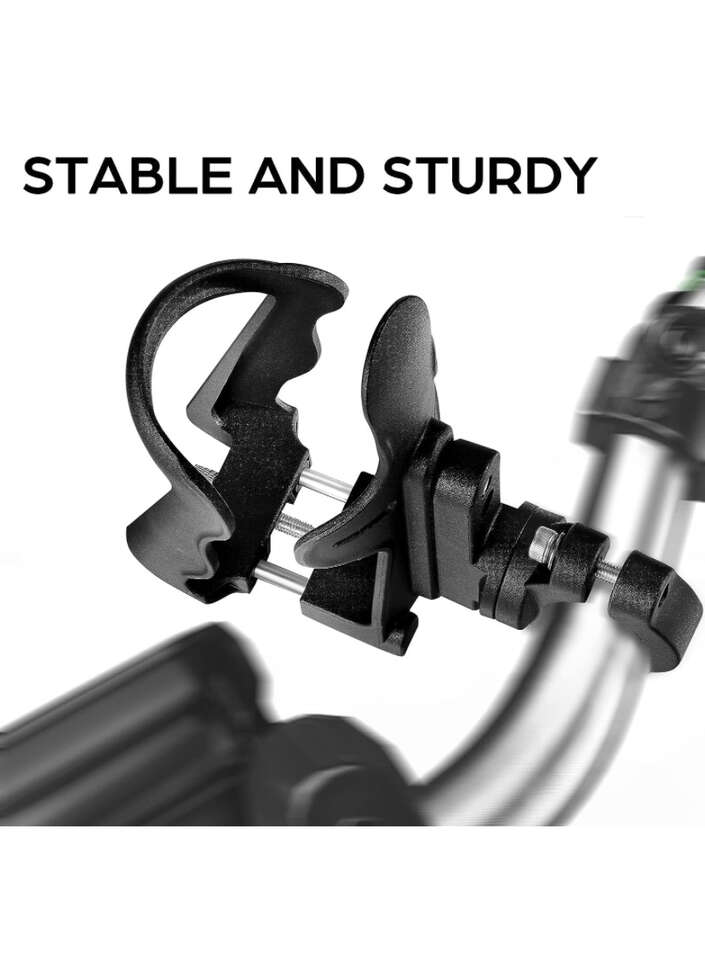 EXCELLENT LOAD-CARRYING CAPACITY: The upgraded Mathtoxyz cup holder provides a higher load capacity. Compared with other drink holders of the same type, we have greater load-bearing capacity (Tested weight: 28 oz). Don't worry about breaking or falling if your bottle weighs below 28oz. STRONG GRIP CLIP: Double screws setup makes the cup holder firmly fixed on the bar. Even on bumpy roads, Mathtoxyz handlebar cup holder securely attaches to the handlebars of your motorcycle, bike, or scooter. It has an impressive firm grip that will not slip and holds your drinks and cups securely. QUICK ADJUSTMENT: Press and hold the ATV drink holder bottom button to quickly adjust the size (1.95-2.75in.), after putting the bottle in, tighten the nut to complete the lock. The flexible arms of the motorcycle drink holder can accommodate various sizes of water bottles, coffee mugs, baby bottles, drink bottles, drink cups, and more. CRACK RESISTANT MATERIAL: The motorcycle cup holder is made of crack-resistant material for extreme durability and toughness. The smooth surface of the handlebars of the bicycle cup holder prevents your bike from getting scratched WIDELY USED & Great Gift idea: The cup holder handlebar clip can be rotated 360 degrees so that it can be clipped anywhere on the bike. As long as the diameter of the handlebar is within the range of (0.78-1.37in. ), it can be applied. The handlebar cup holder is the best gift for Motorcycle and bicycle enthusiasts.