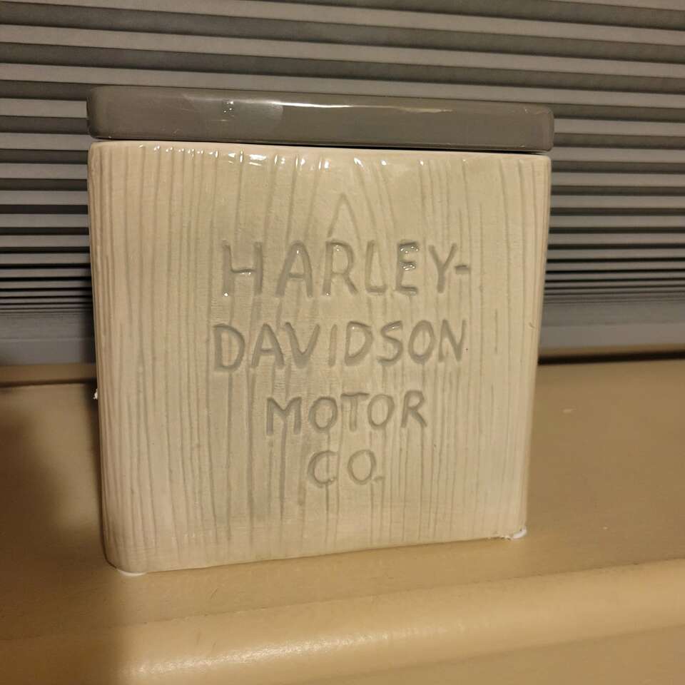 3 piece Harley Davidson ceramic canister set. This set has never been used.