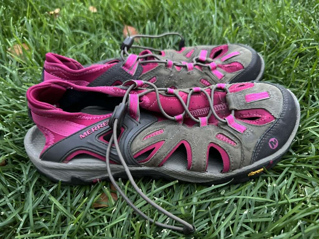 Merrell women’s size 10 Beige/fuschia neoprene lined hiking or water sandals and barely used condition. See photos for details. I take cash or Venmo. Text is best. 801-201-4446.
