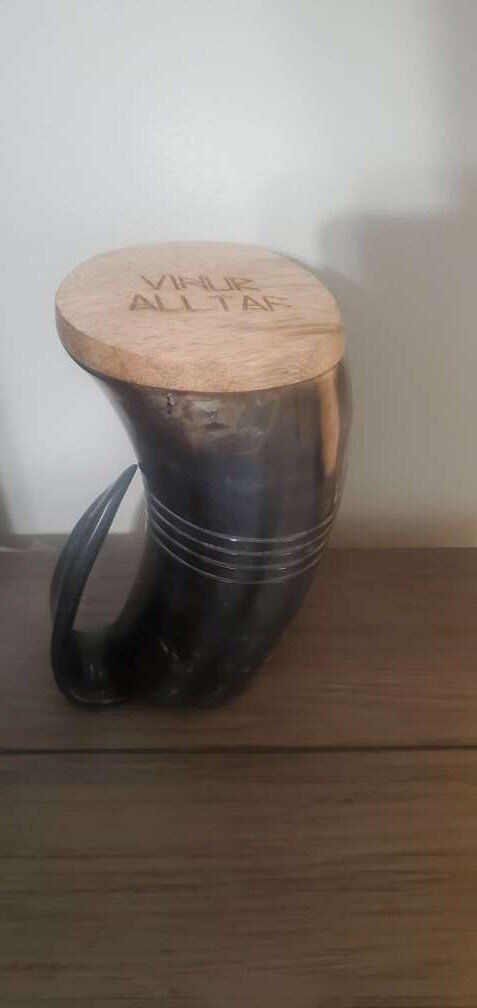 Online info: DRINK FROM A GENUINE OX HORN- Every Viking horn is made of authentic, ethically sourced ox horn (Certified Livestock Certificate), painstakingly selected for appearance, durability, color pattern and shape. Norse unique shape. It's time that you chose a drinking vessel as interesting as you