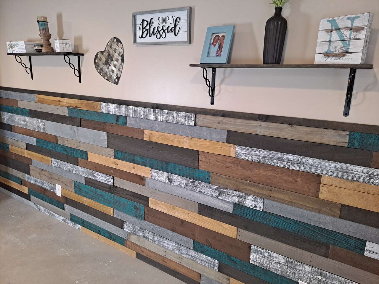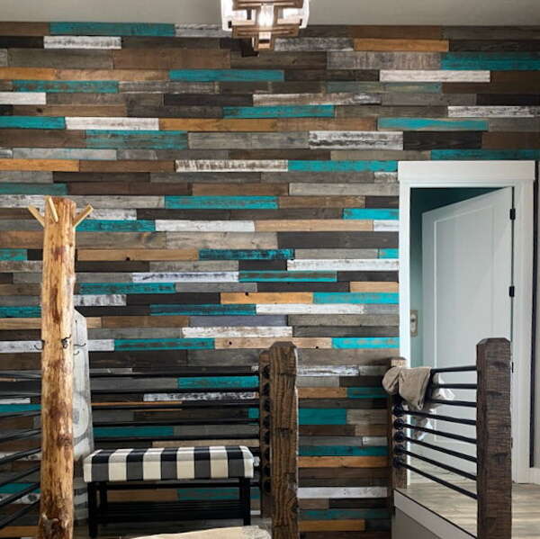 Do you have color-washed boards available? Yes we have 4 color painted boards to choose from. We have turquoise, white, light blue, and barn red. Note: I suggest using about 10-15 colored boards per 100sqft wall