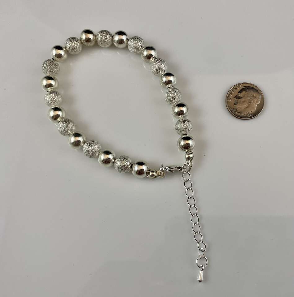 NEW - Beautiful Adjustable Silver Plated Bracelet/Anklet - Stunning Smooth and Textured Beads - See Photos. This bracelet is adjustable 8 1/8 - 9 3/4.