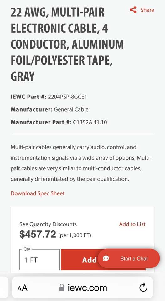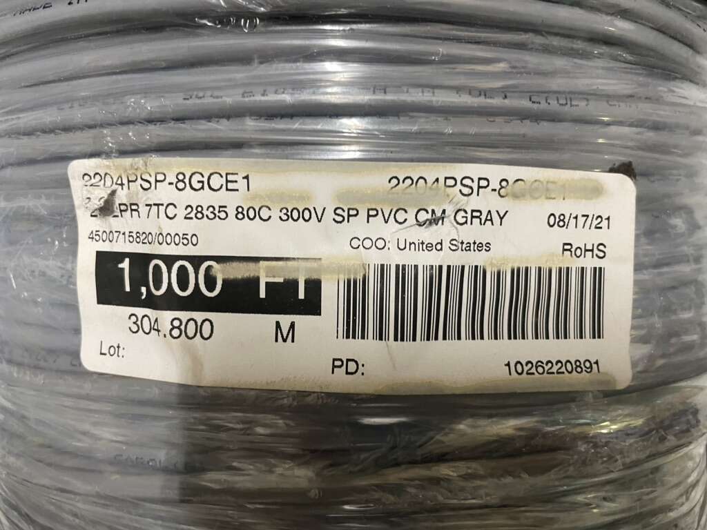 Description- 1000’ Spool of 22 AWG 4-conductor aluminum foil/polyester tape with gray insulation. For audio, control and instrumentation signals. See photos for more product information and specifications.