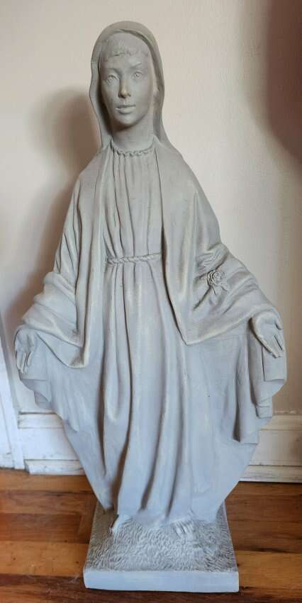 21 Inch Mother Mary It's not plastic and it's not Porcelain but I don't know what it is made out of. $27