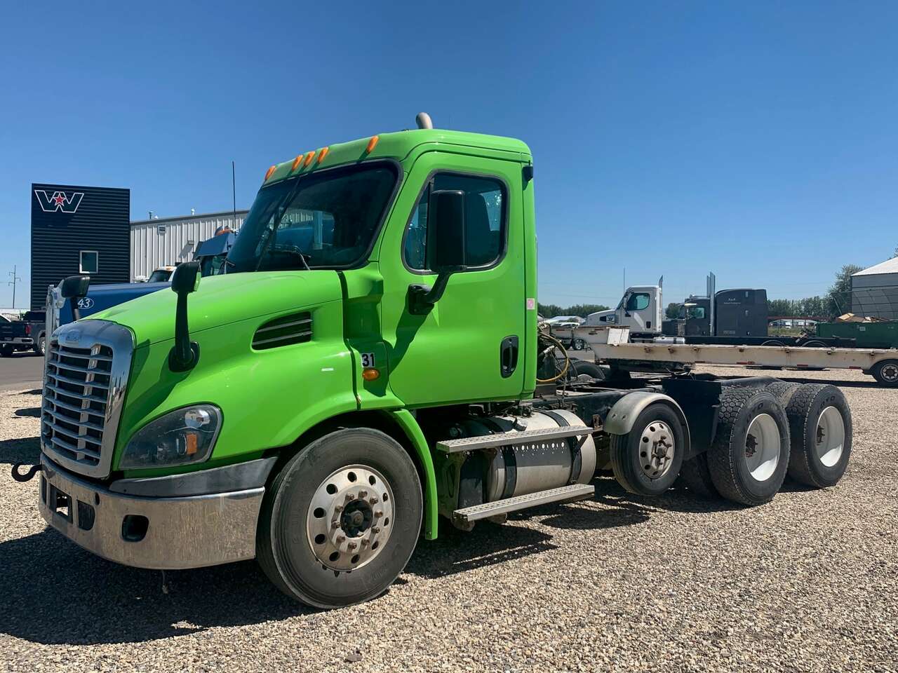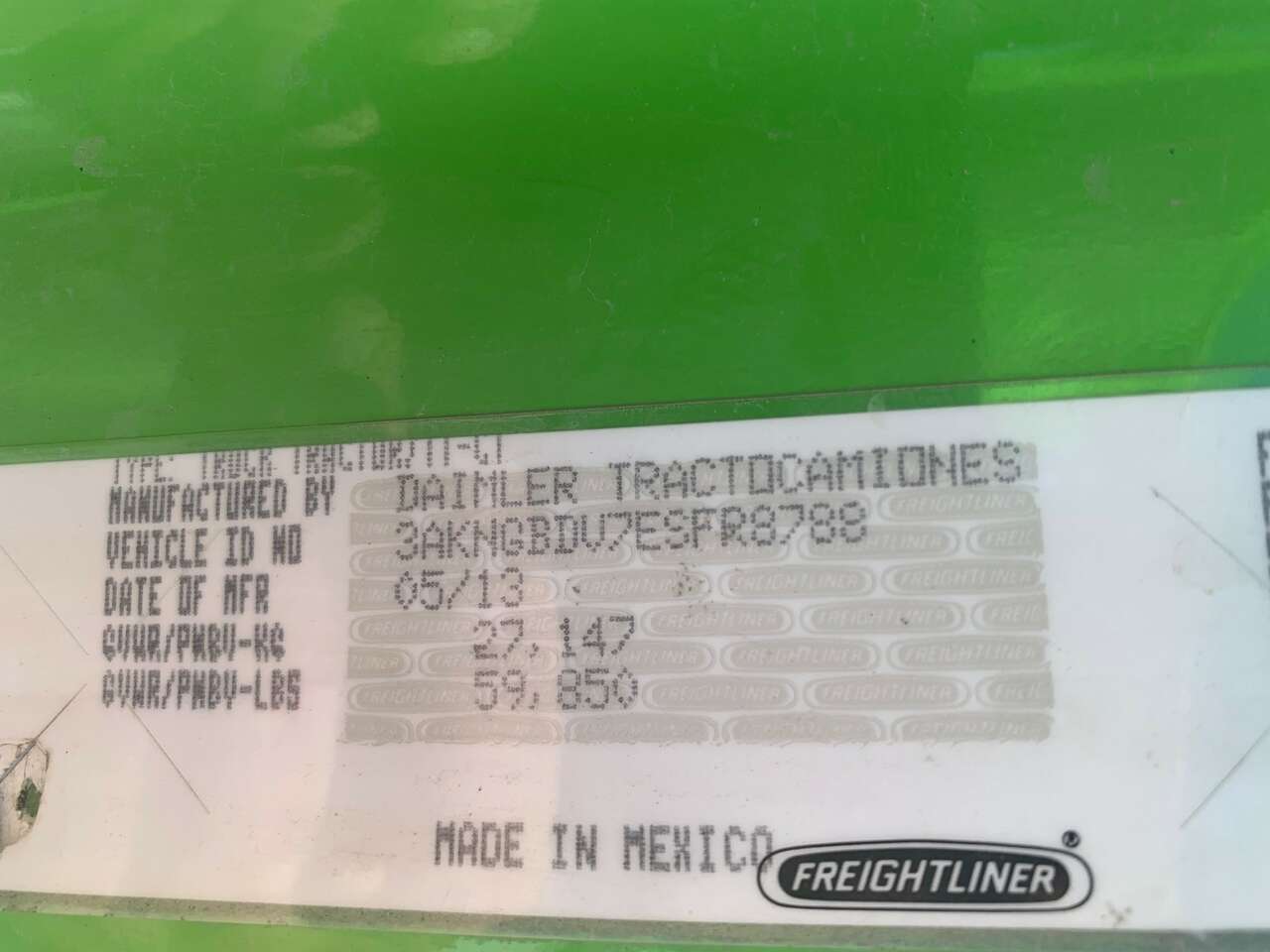Year 2014 Manufacturer FREIGHTLINER Model CASCADIA 113 VIN 3AKNGBDV7ESFR8788 Condition Used Stock Number 148819 Mileage 780,690 mi Horsepower 475 HP Engine Manufacturer DETROIT Engine Model DD13 Engine Displacement 12.8 l Fuel Type Diesel Engine Brake Yes Transmission Automated Drive 8x4 Suspension Air Ride Number of Rear Axles Tri Gross Vehicle Weight Rating Class 8: 33,001 pounds or greater Front Axle Weight 12,000 lb Rear Axle Weight 40,000 lb Wheels Aluminum Lift Axle Yes Lift Axle Type Mid Brake System Type Drum Drive Side Left Hand Drive Wet Kit Yes Color Green