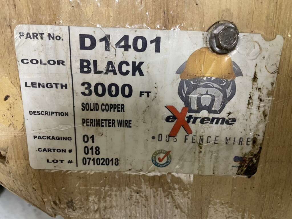 Description- 3000’ Spool of 14 gauge solid copper perimeter dog fence wire in black. See photos for more product information and specifications.