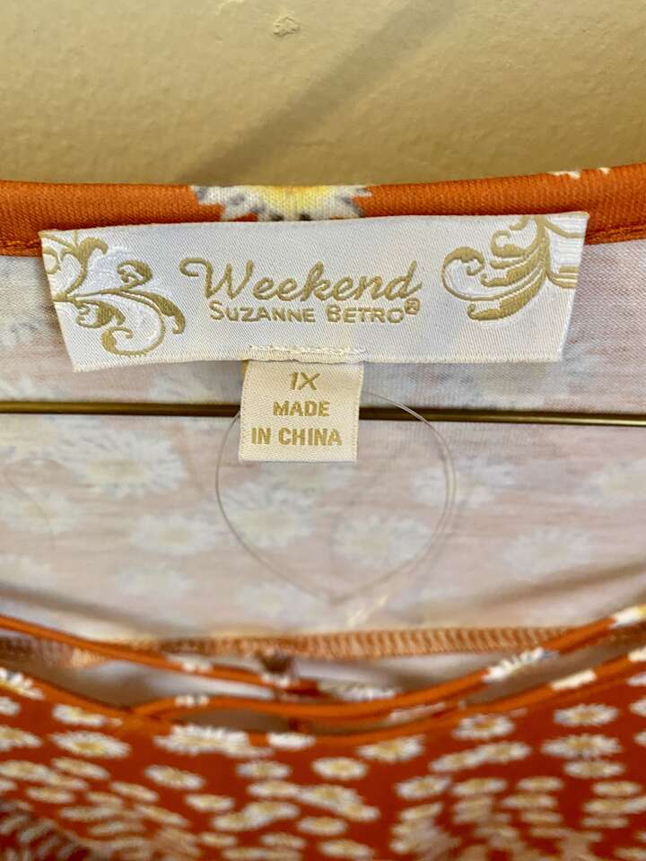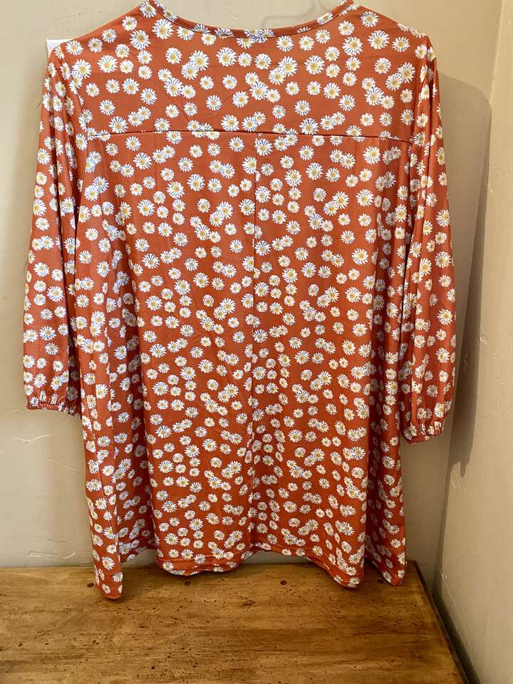 NEW - Susan Betro SZ 1X Tunic With Tiny Daisies Over Soft Brown Fabric -The Crosshatch Detail Makes This Top -C PICS. The Sz is 1X but because of the cut it could probably go one size down or one size up. I also have two other listings by this Designer.