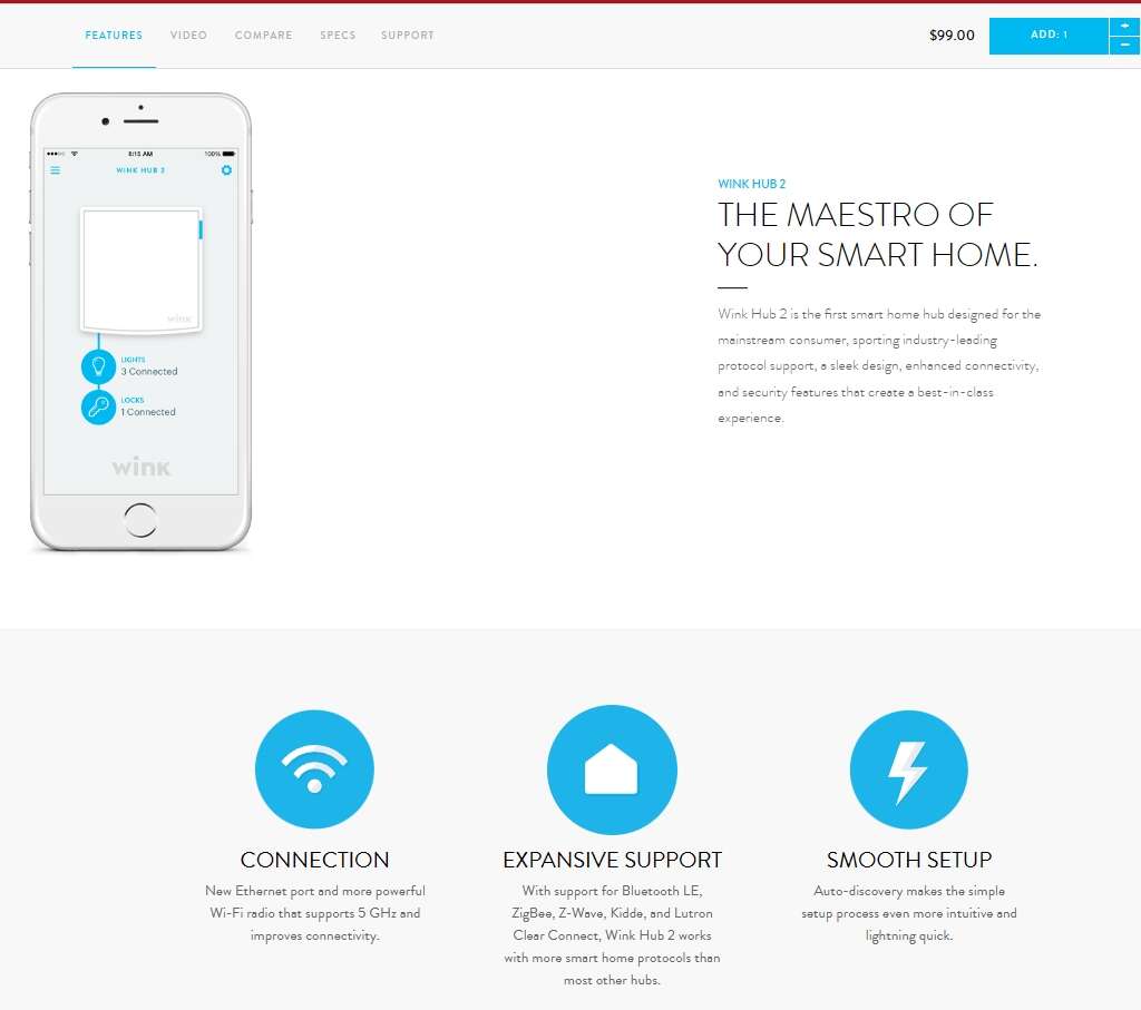 EXPANSIVE SUPPORT With support for Bluetooth LE, ZigBee, Z-Wave, Kidde, and Lutron Clear Connect, Wink Hub 2 works with more smart home protocols than most other hubs.