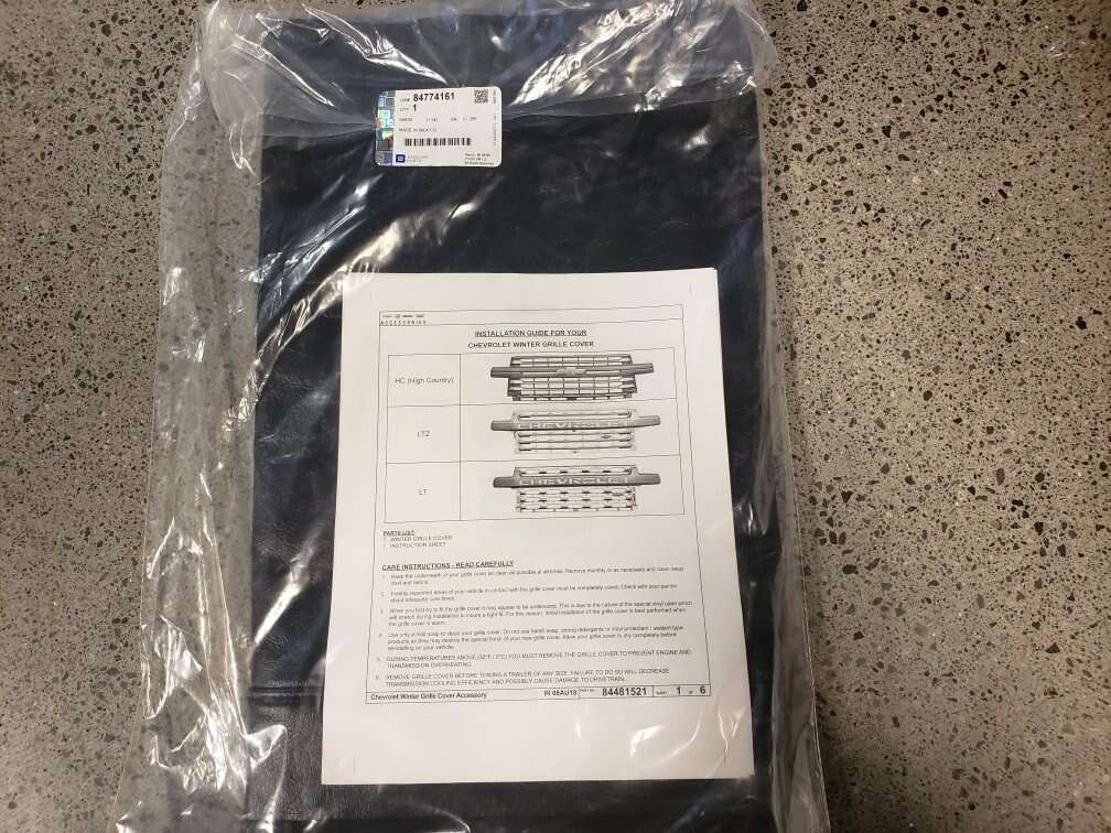 BIG PRICE REDUCTION! NEW-DURABLE VINYL/CLOTH GRILL COVER FOR 2020-2023 GM SILVERADO 2500HD, 3500HD OEM 84774161. NEW, IN PACKAGE. PURCHASE WELL BELOW COST NOW FOR WIN TER. (COMPARE COST). SMART BUY