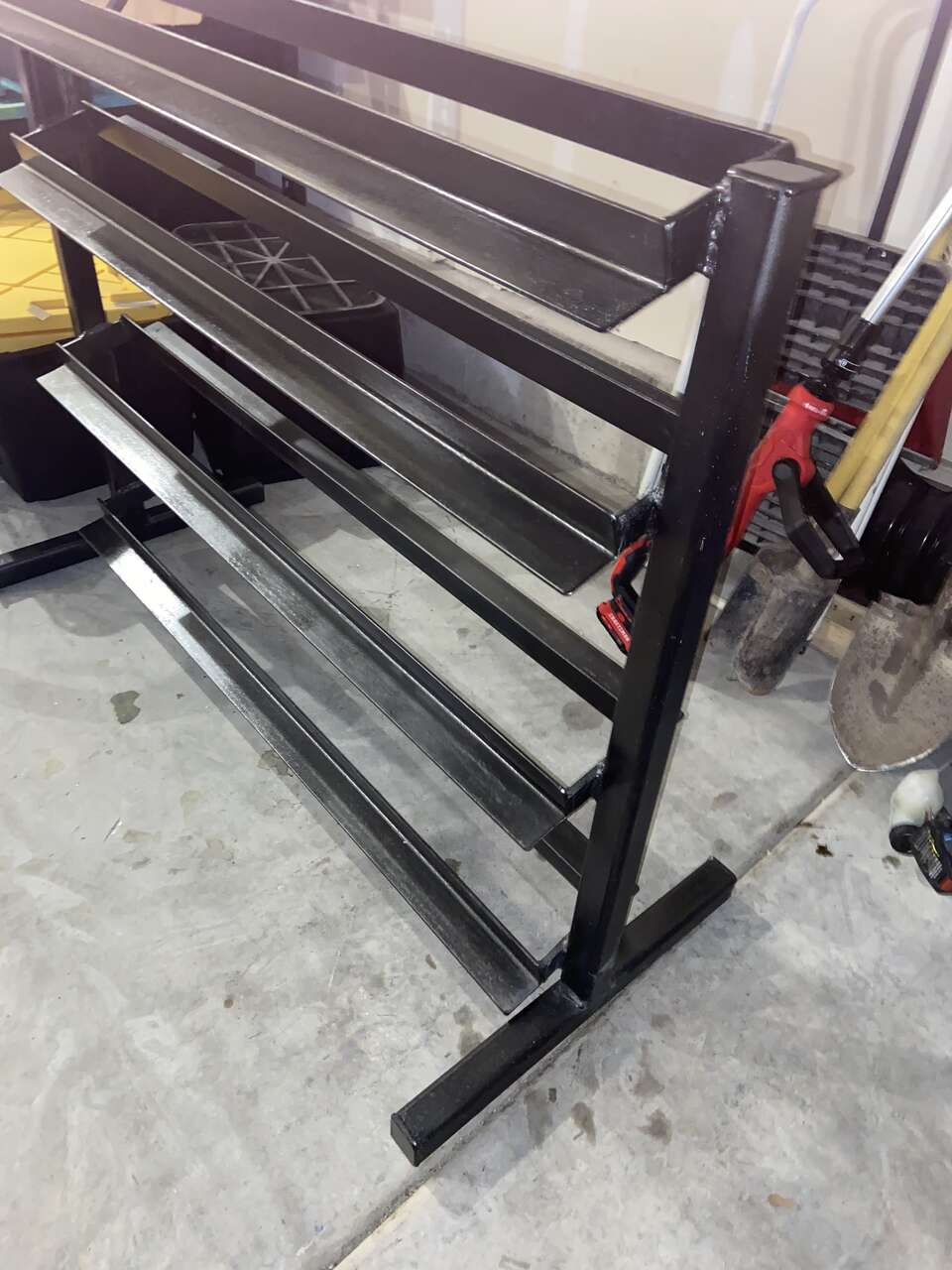 VenmoHeavy duty dumbbell rack, all welded together, one piece. 4 tier custom rack. Measurements height 40”, length 54”. Selling for $400 or send me an offer.