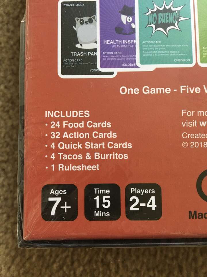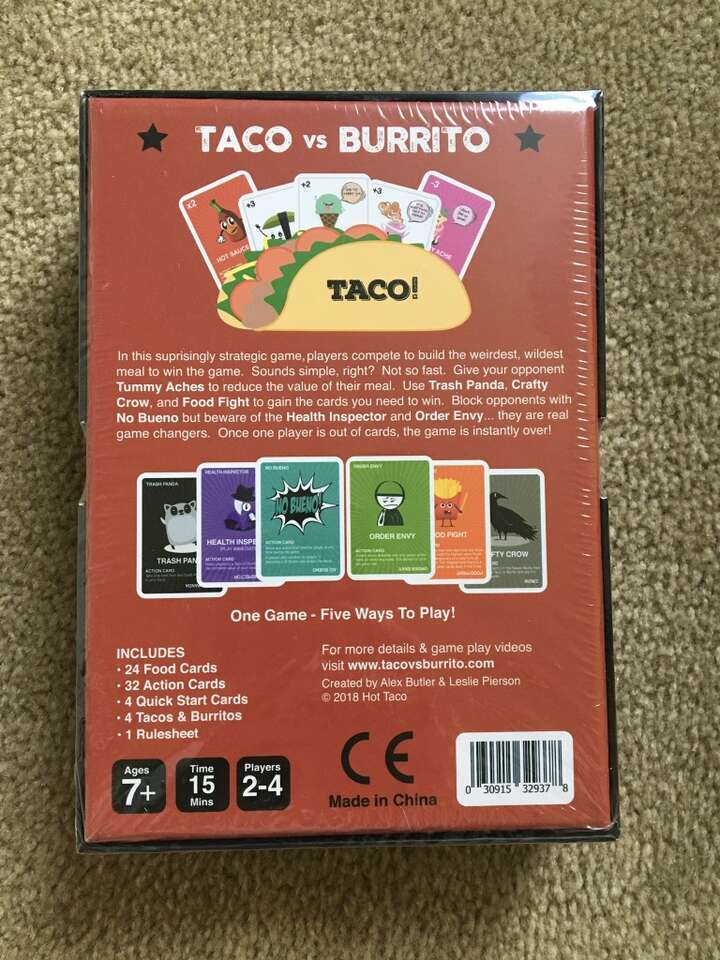 NEW (sealed in plastic) Taco vs. Burrito Card Game: the battle to build the weirdest, wildest meal is on! By Hot Taco. Ages 7+, 2-4 players. New, unopened condition. Text only. Cash or Venmo.
