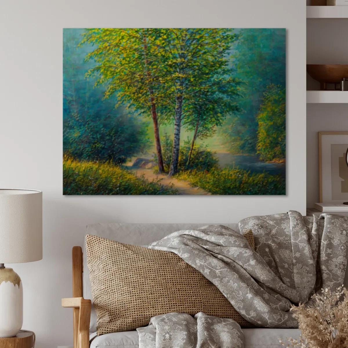 ApplePayWayfair Three Vibrant Trees By The River Painting On Canvas