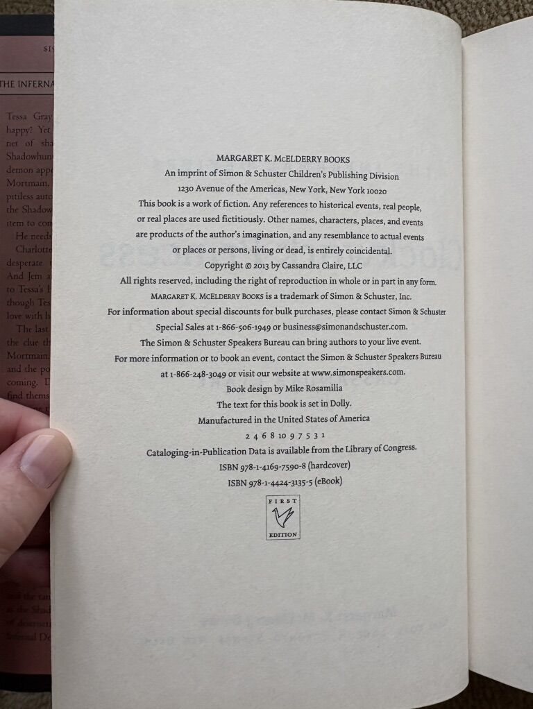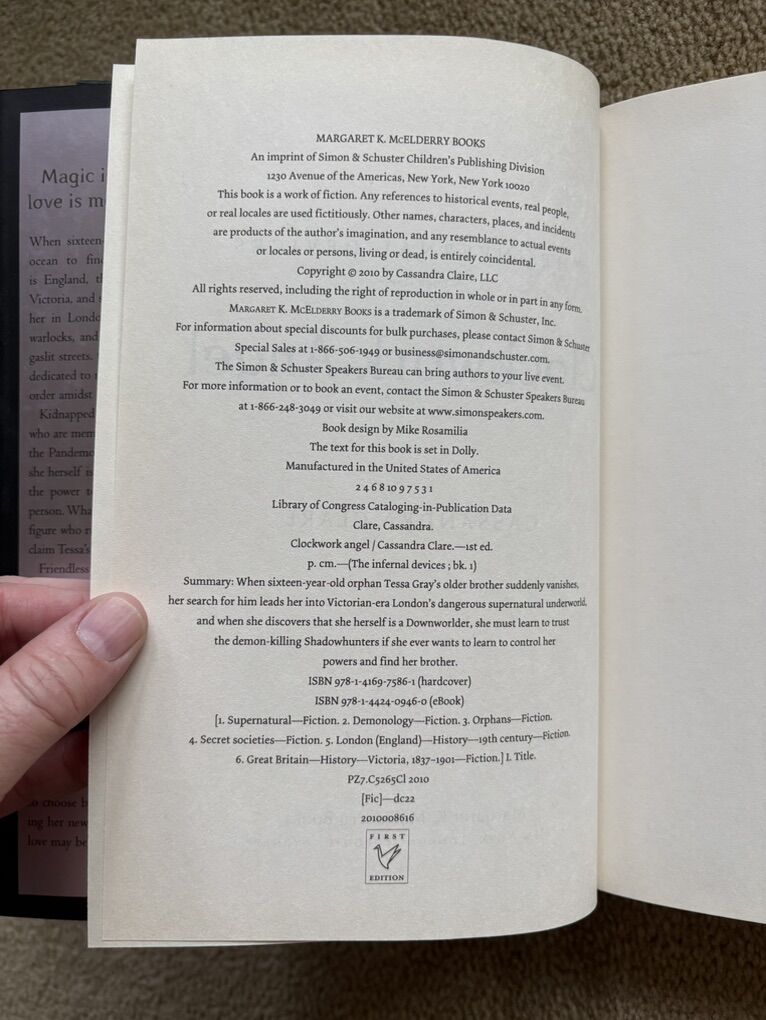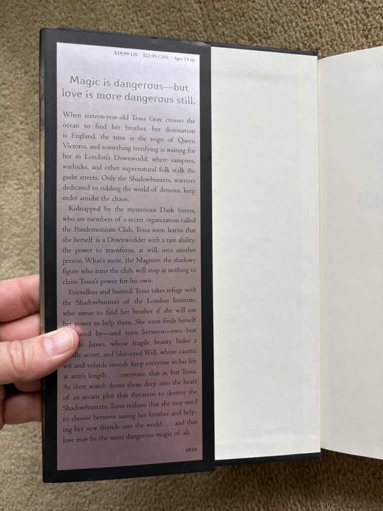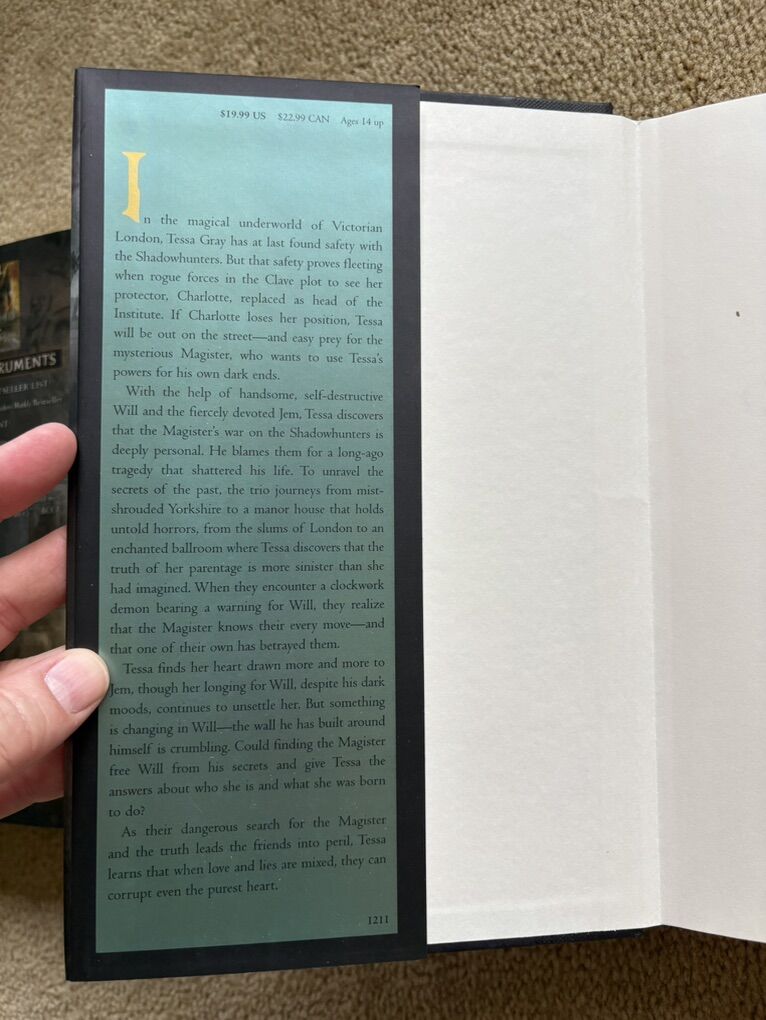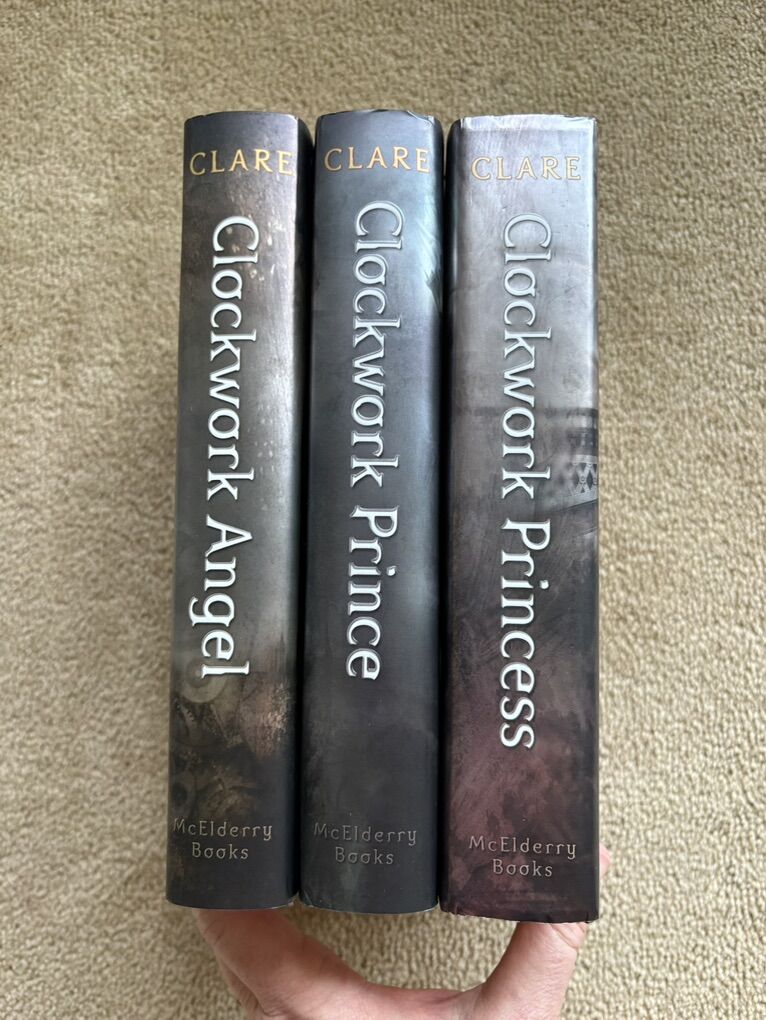 The Infernal Devices Trilogy, by Cassandra Clare: Clockwork Angel (2010, 479 pages), Clockwork Prince (2011, 502 pages), and Clockwork Princess (2013, 570 pages). Prequels to the Mortal Instruments Series. Hardbacks in excellent, like new condition, including dust jackets. Text only. Cash or Venmo.