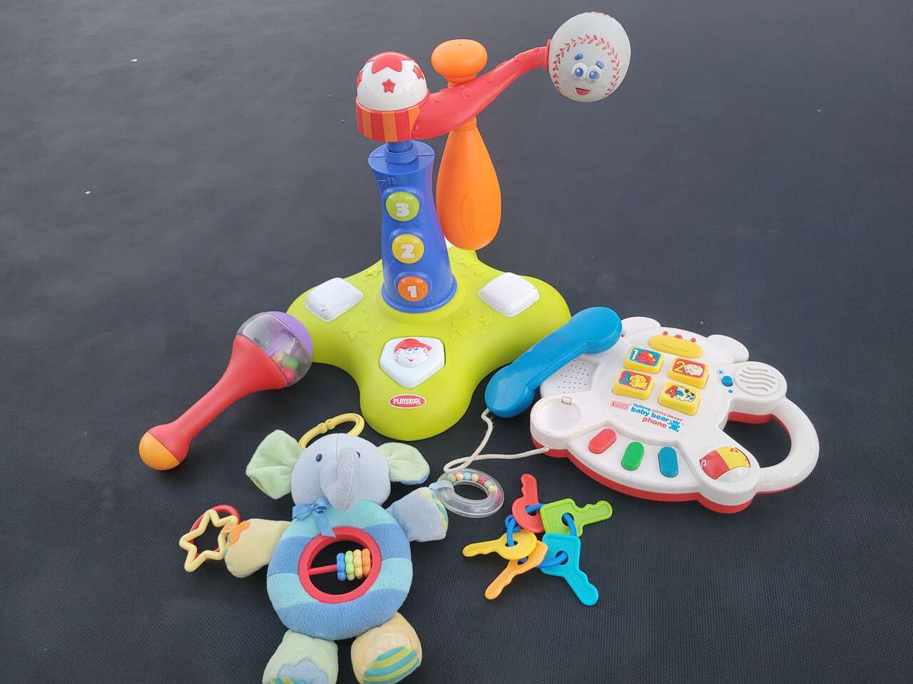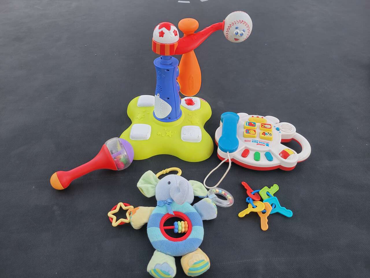 Baseball toy, phone, keys, clip toy, rattle