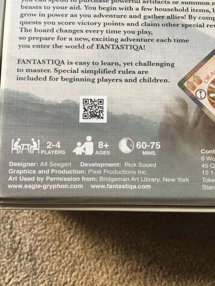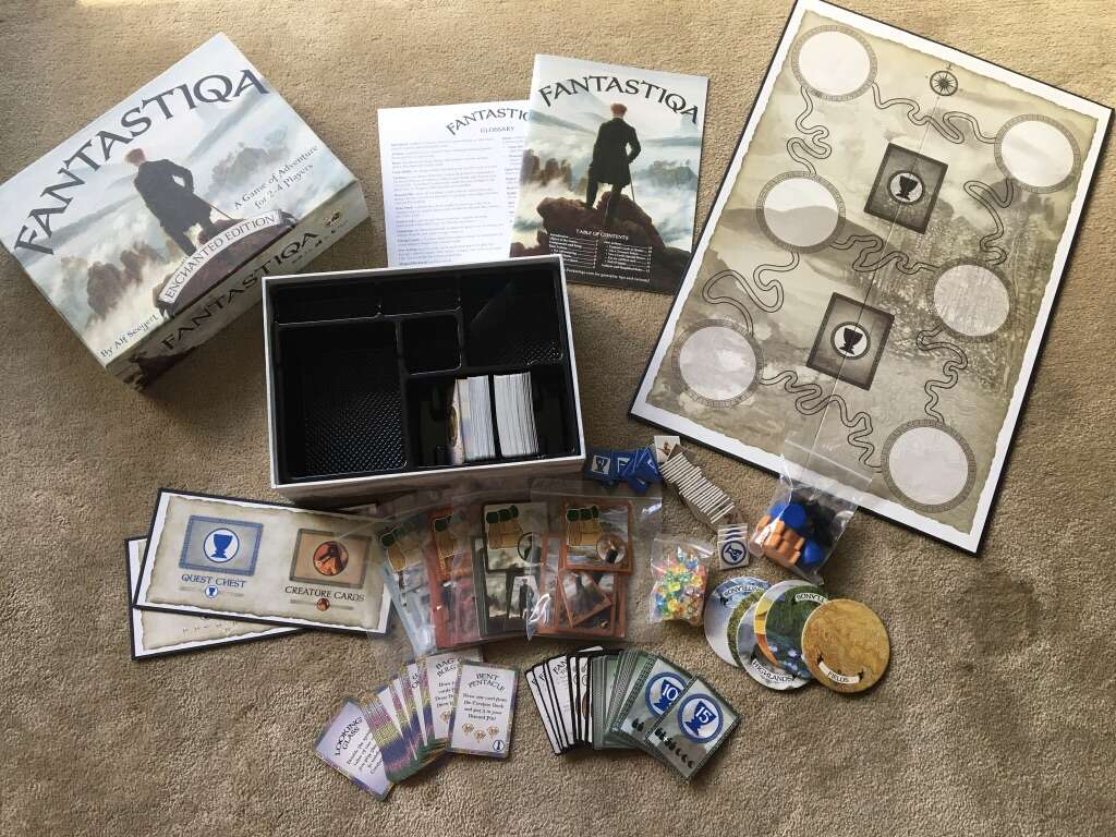 COMPLETE Fantastiqa Board Game: Enchanted Edition. A game of adventure for 2-4 players. Ages 8+. By Alf Seegert, Eagle-Gryphon games. COMPLETE game, no missing pieces, everything in excellent condition. Text only. Cash or Venmo.