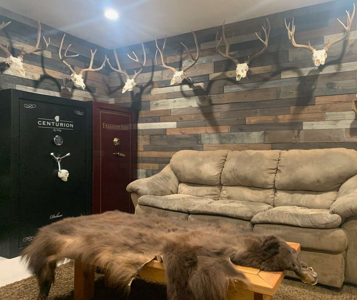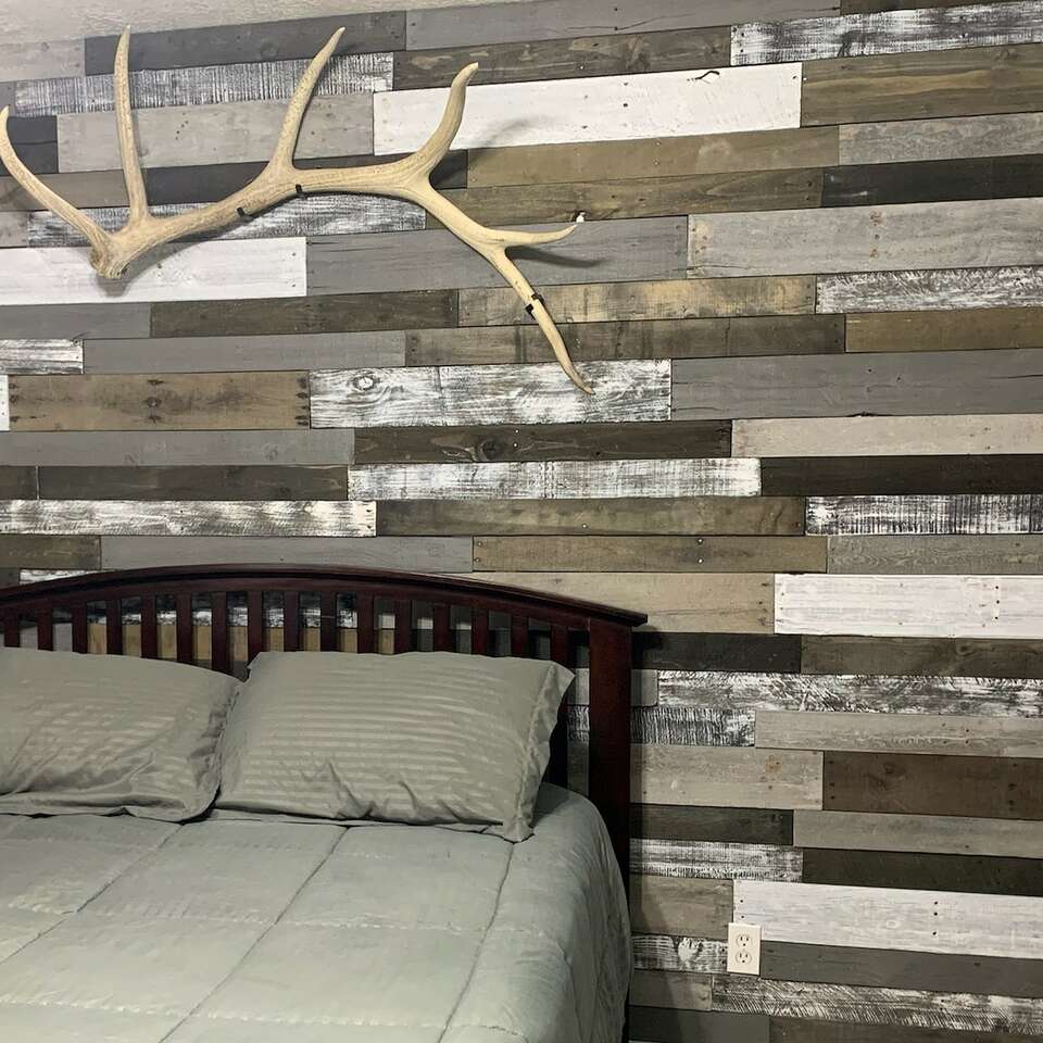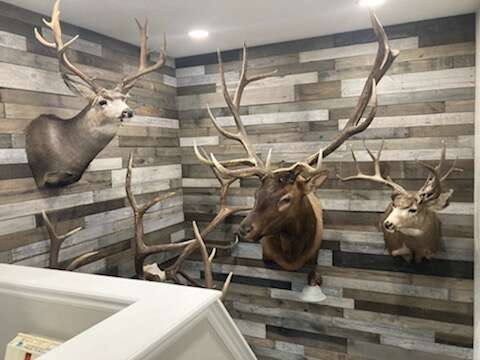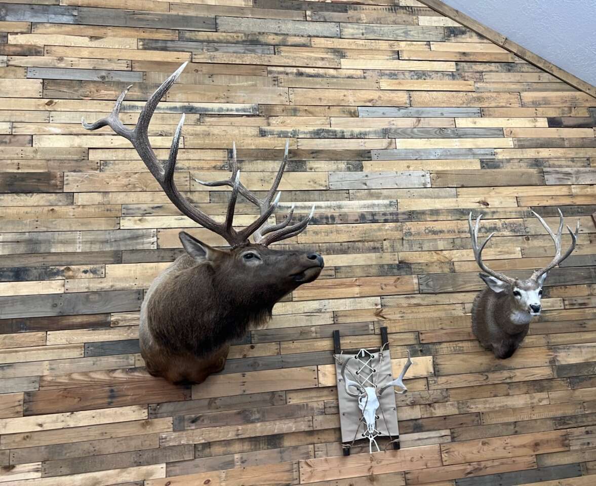 Reclaimed pallet walls are popular for all of your trophy mounts. Our natural colors perfectly compliment the natural tones in the animals hide. Do something you've always wanted to do...Deck out your trophy room with reclaimed pallet wood. The hardest choice is whether to do one pallet wall or the entire room. We have 15 colors to choose from in 2 sizes. Visit our showroom in Taylorsville or online at www.slcpalletwalls.com. We sell the wood for $3/sqft or we can install it for $9sqft which covers everything.