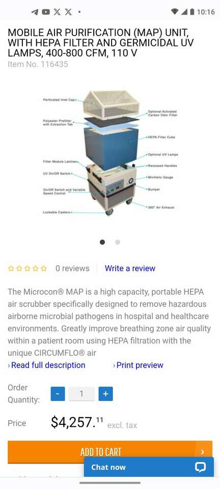 This is Microcon MAP 800 air filtration system. It's not your usual air filter that is sold in retail, This equipment used exclusively in hospitals due to high efficiency against wide spectrum of viral and bacterial pathogens. It's in great working condition.