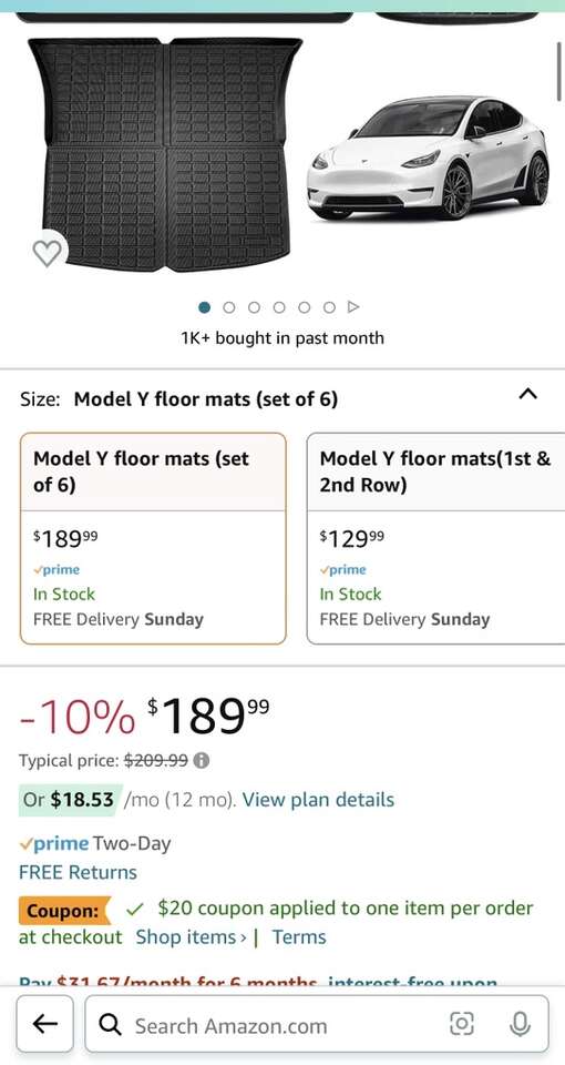 6 piece waterproof floor mats for Tesla Model Y. This includes the mats for the\