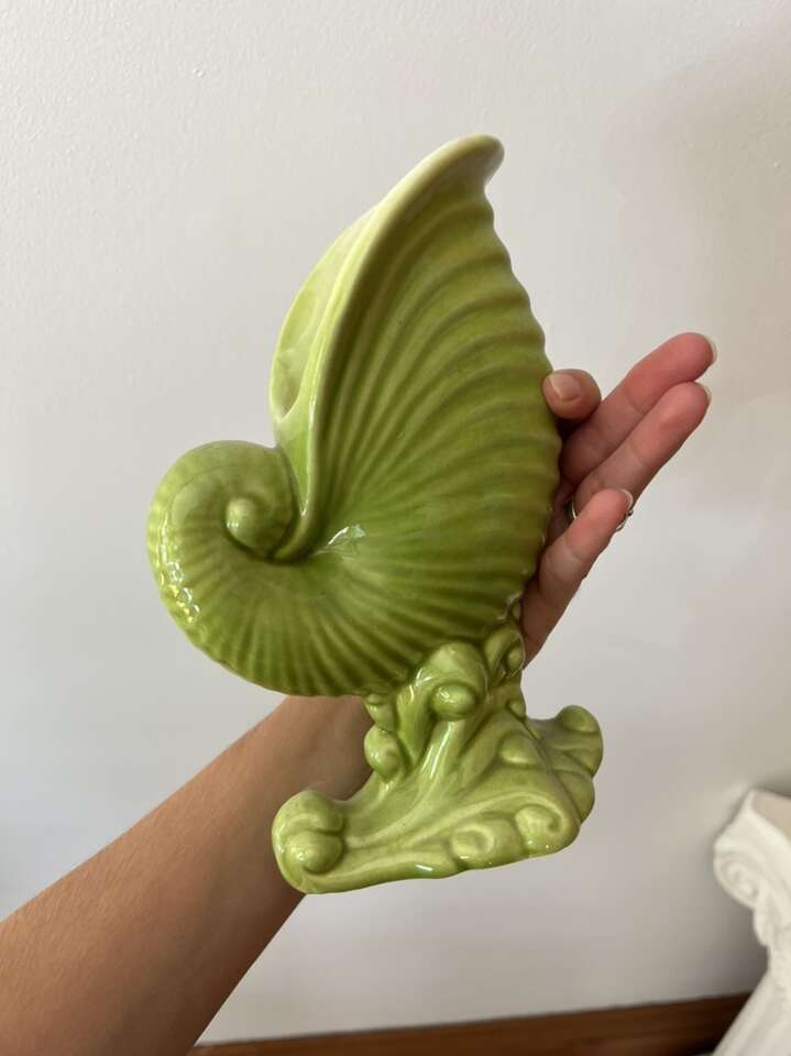 VenmoVintage Green Vase Included pictures in my hand for size reference. Cash or Venmo. Venmo to hold. Feel free to check out my other listings. :)