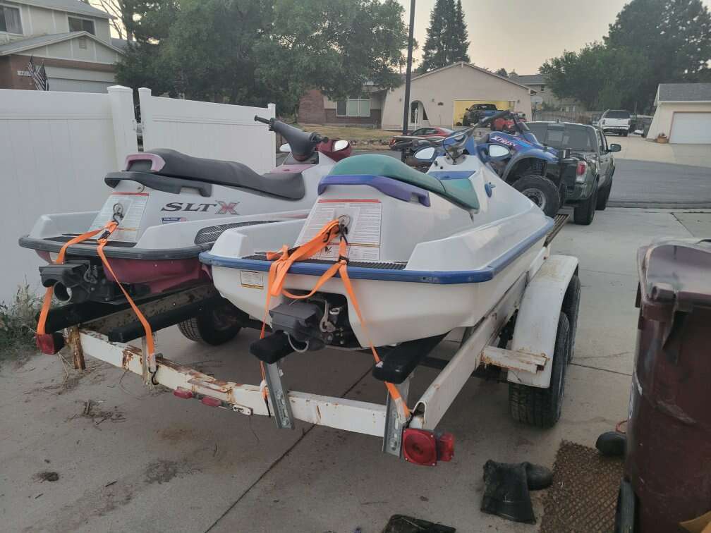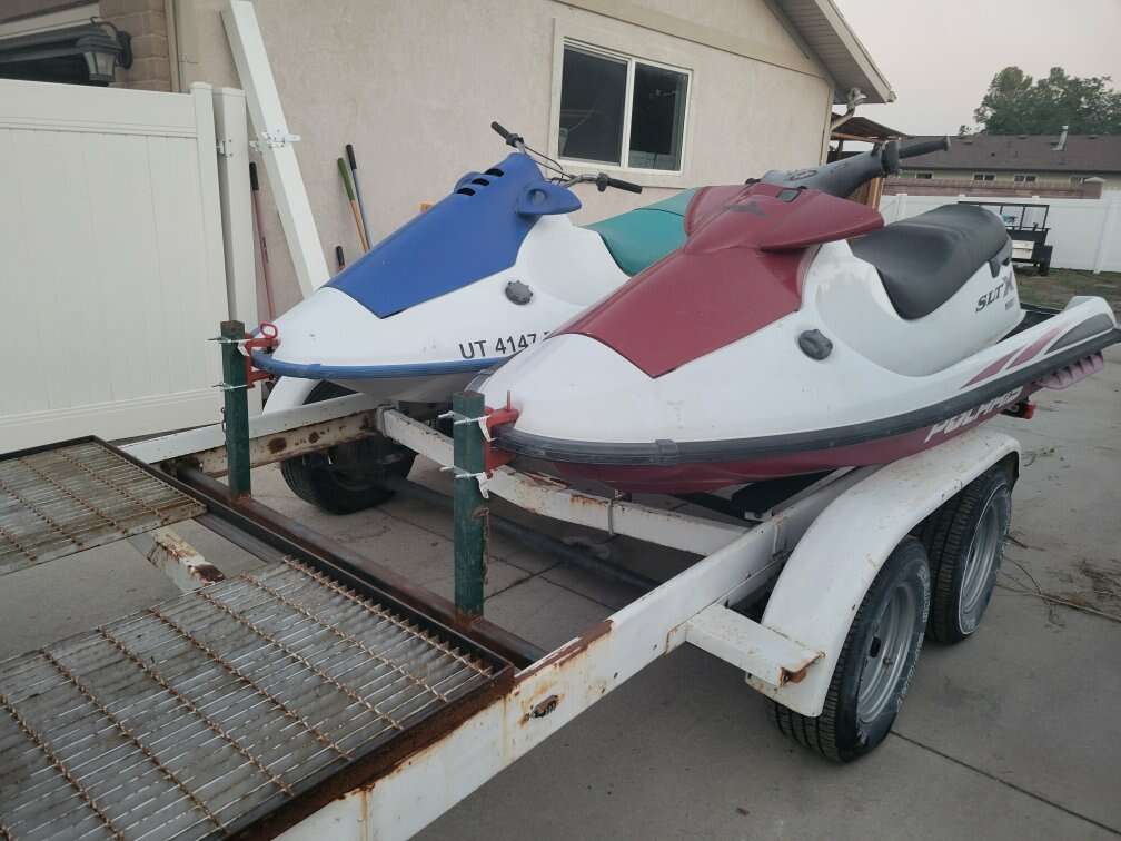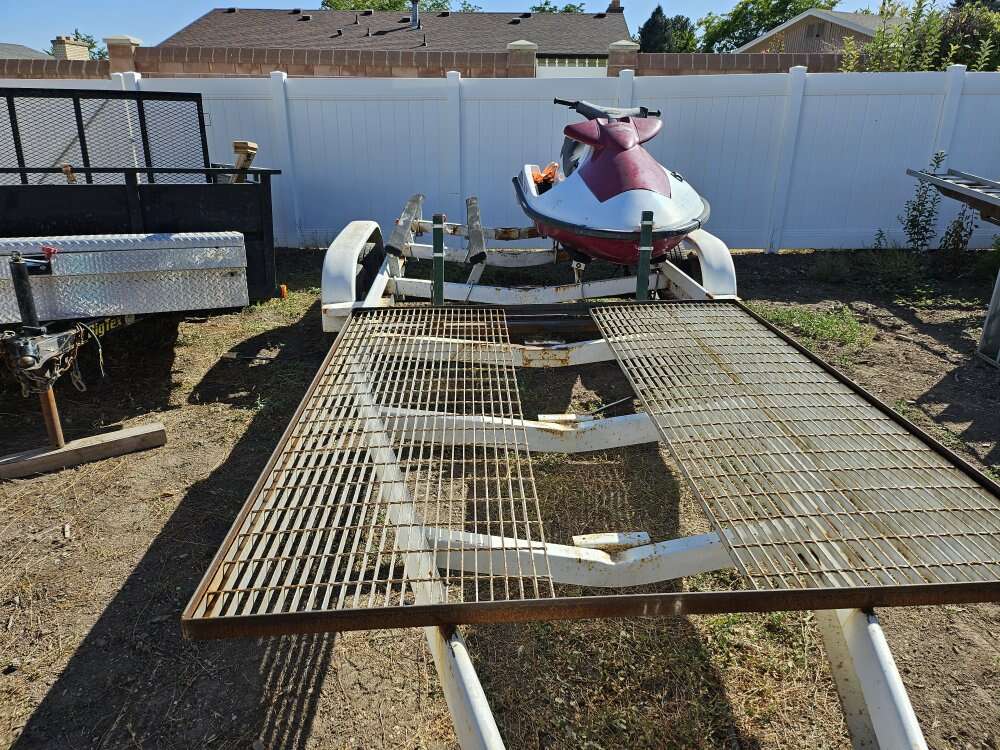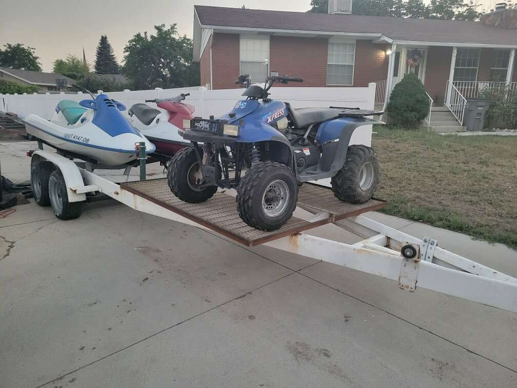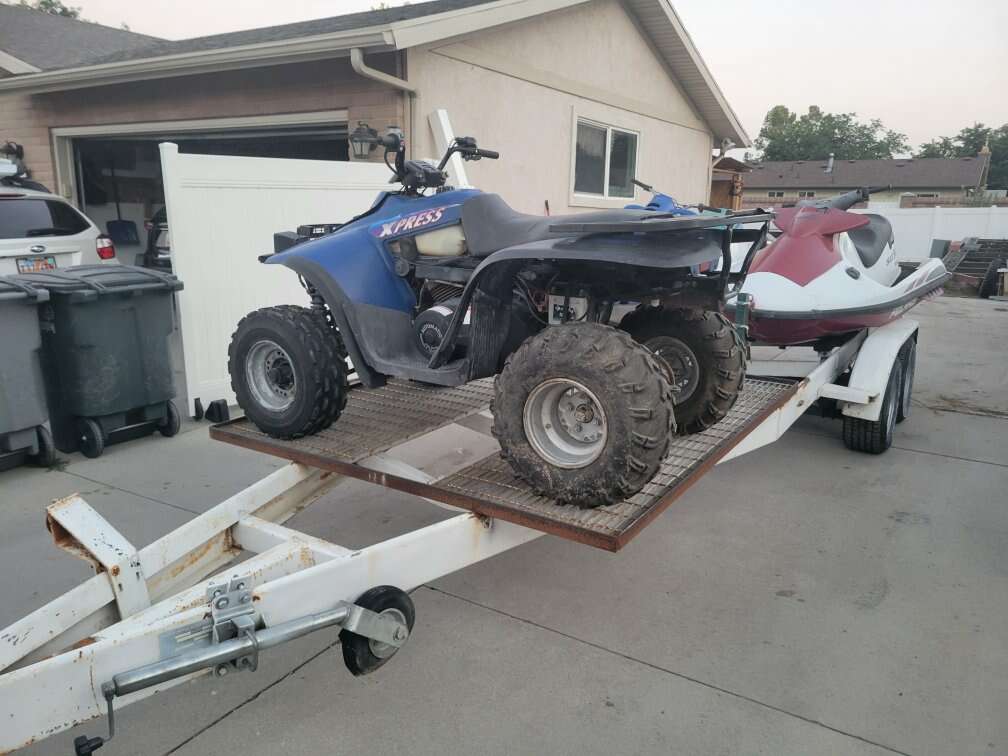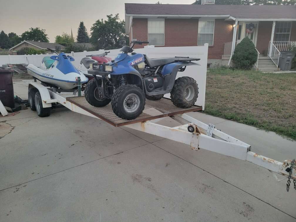 Up for sale is a 25' dual axle trailer that I built into a two place watercraft/4 wheeler trailer. The trailer is 25' long and it pulls like a dream. The lights work great, too. It used to have a massive boat on it.