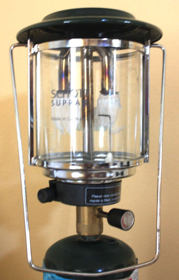 Propane mounted lantern, adjustable dual burner for brighter light, piezo-electric instant ignition, made in Germany, just like new.