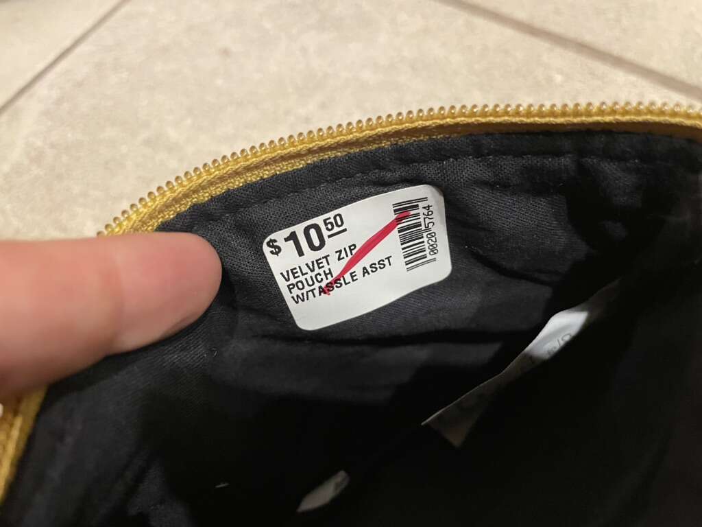 I have a new black velvet zipper pouch with a chartreuse colored zipper and tassel pull. It’s not quite as yellow as the picture, a little greenish. It is 6 inches wide and 4 1/2 inches tall. The inside is black. The price tag shows it was $10.50. Im asking just $2. See my other ads for jewelry, artwork, home decor and more.