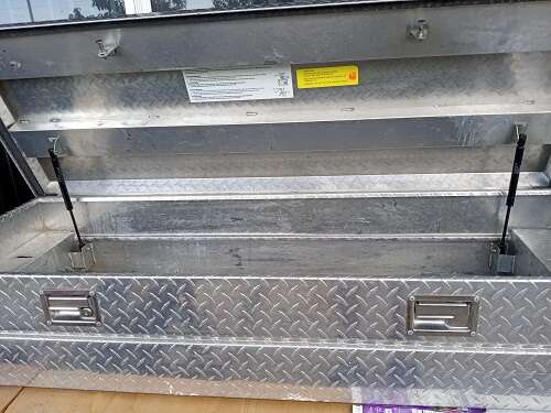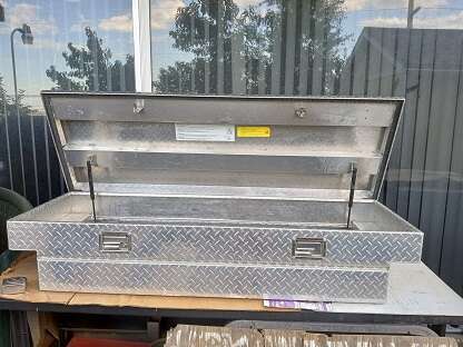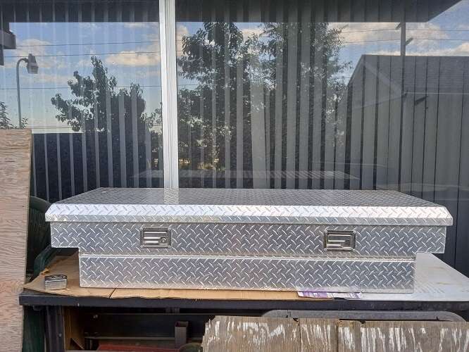 Truck tool Boox for sale size: 61" L 21" D 13"1/2 H had Lock and keys. Sale for $220.00. Cash only please call 801-205-3309. or 385-887-4520 or text.