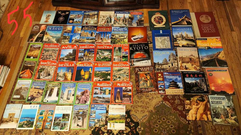 Over 270 books,travel guides from all over the place. Just a lot of different books. I'm not real familiar with the book world but would love to sell all. $169