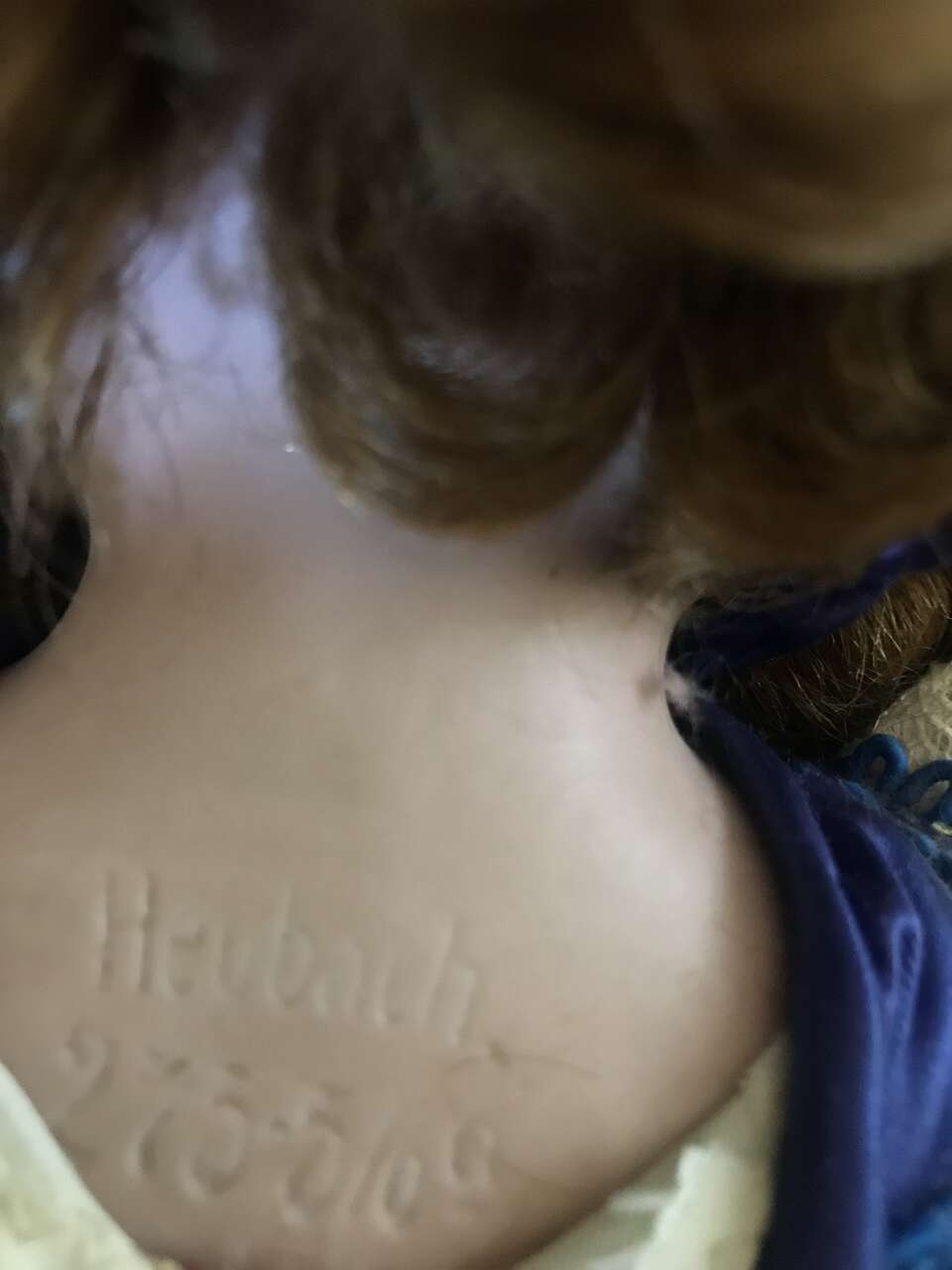 20" Heubach Bisque head doll 275 sleepy eyes leather body handmade dress Germany