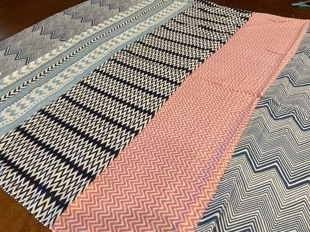 I have 3 new really lightweight but large scarves with zig zag chevron patterns in blues and pink. There are 3 blue tassels at each corner. They are just over 38 inches wide and 69 inches long. The tags say 100% cotton and the price tags show they were $28 each. I’m asking $3 each. See my other ads for jewelry, artwork, home decor and more.