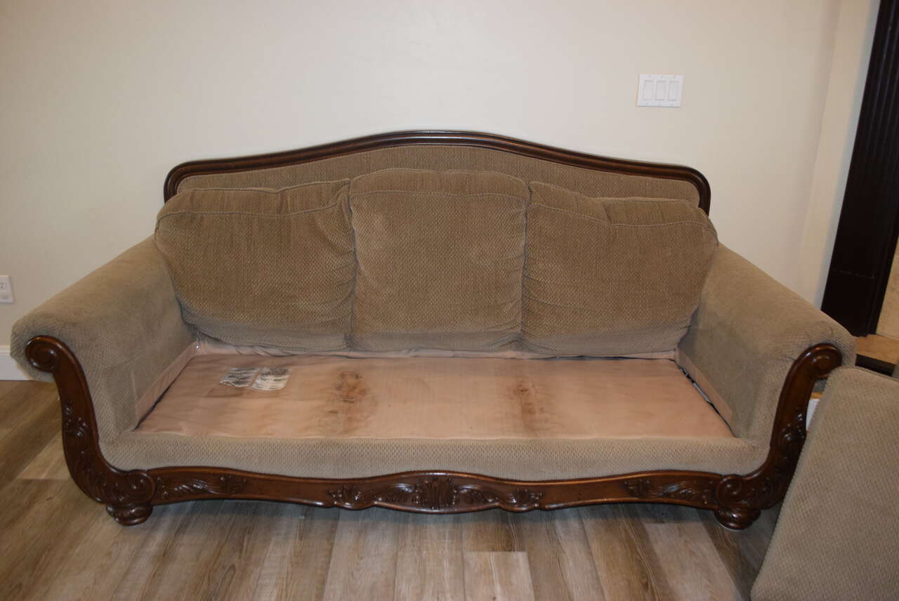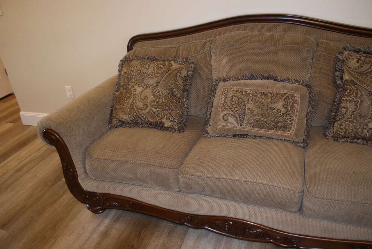 Used Couch 3 cushions, 3 pillows Brown Appox 77 inch long by 38 inches wide