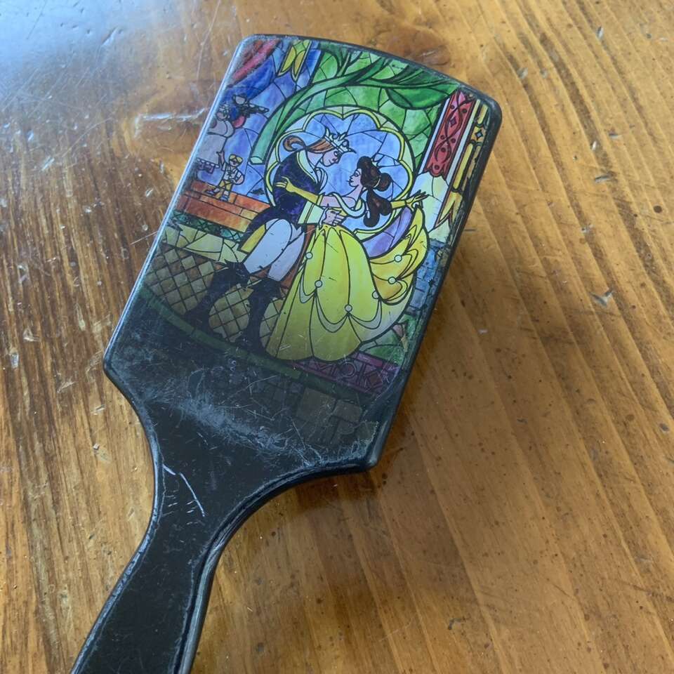 Disney Hot Topic Beauty & the Beast Stained Glass Paddle Brush Tale As Old As Time…. Good condition but it does have some scratches