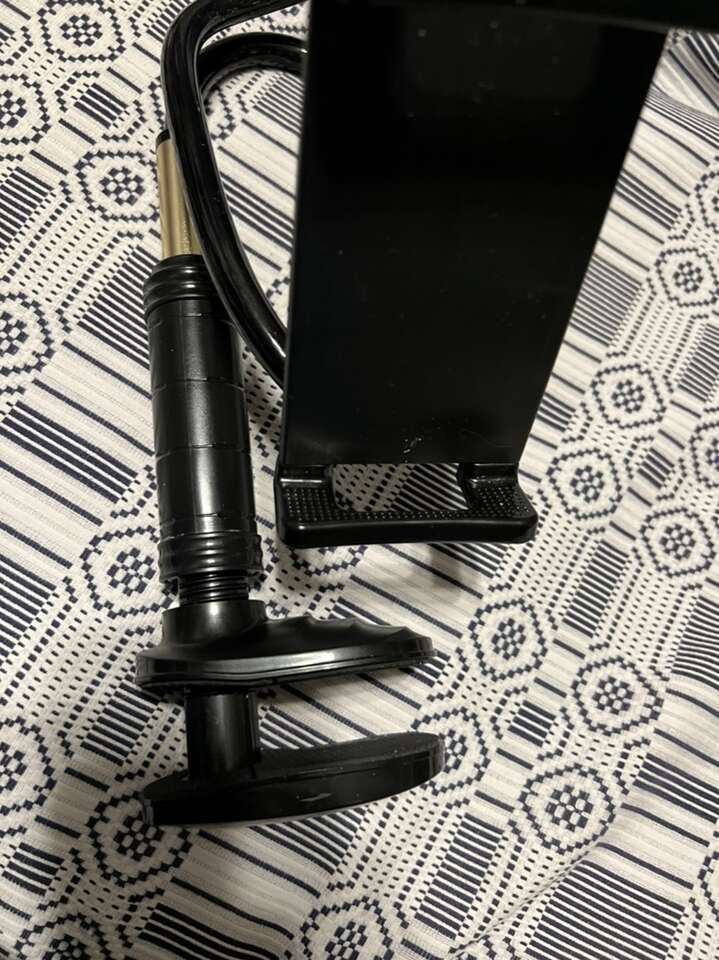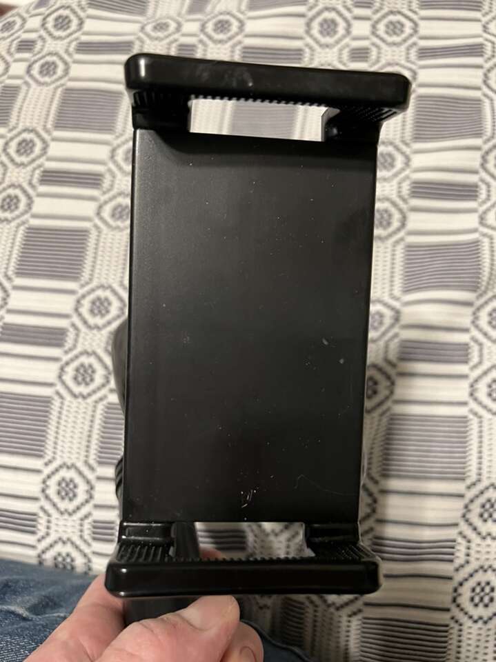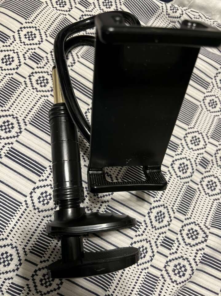 Brand new cell phone holder. The phone cradle is spring adjustable to fit any size phone. The bottom has a clamp that you can clamp on to a desk, counter or surface in you car that has a lip. Very strong and customizable and flexible.