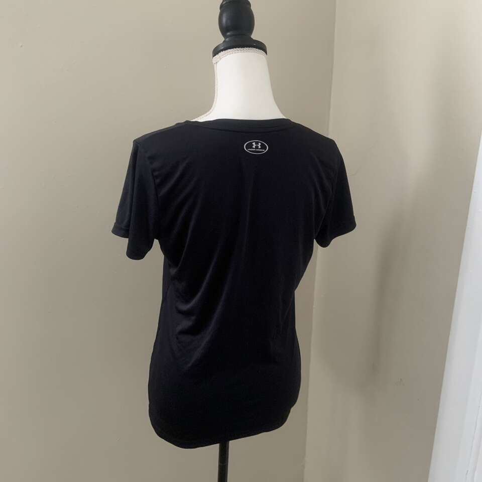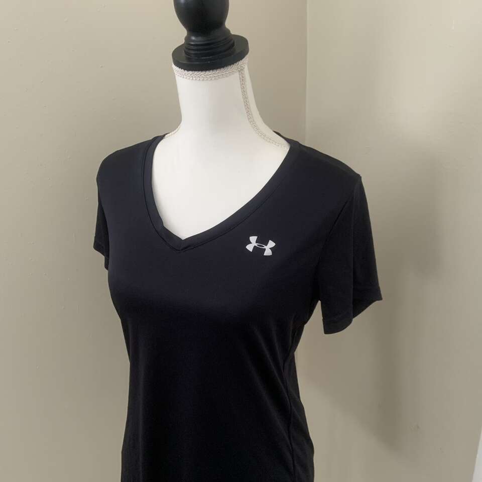 Under Armour Heat Gear T-Shirt Women's Medium Short Sleeve V-Neck Graphic Black