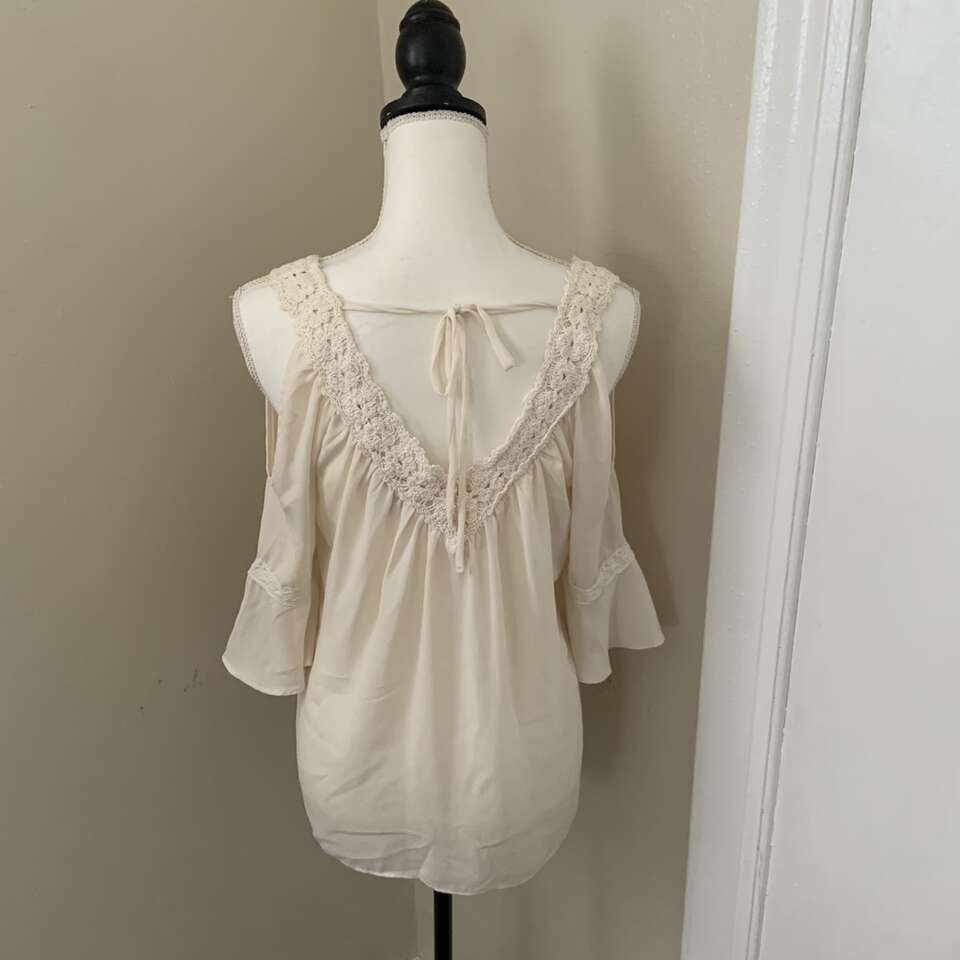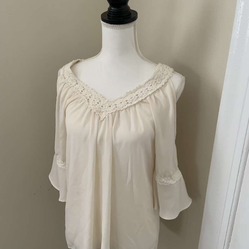 Charming Charlie Women's Ivory 3/4 Sleeve Cold Shoulder Blouse Size Small