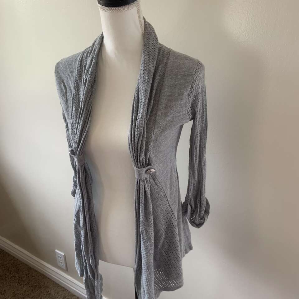 Rue 21 Light Grey Sweater Cardigan Size Small No size tag I’m guessing it’s a size small