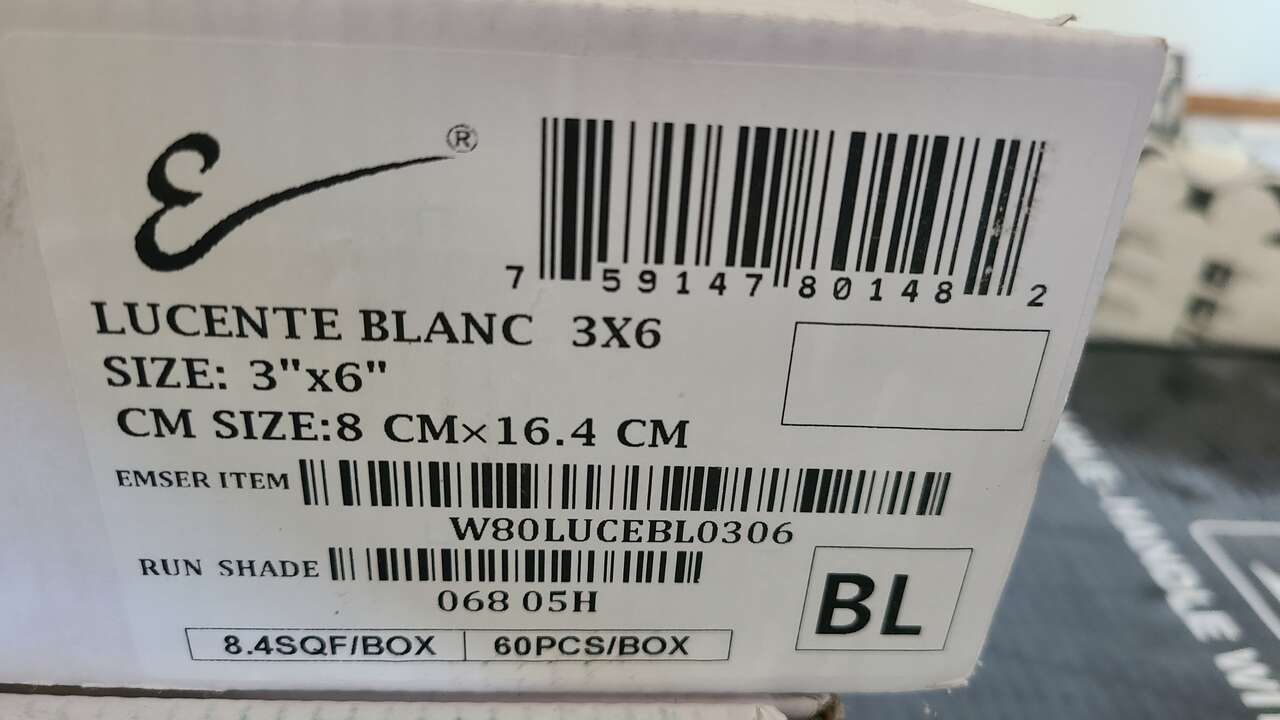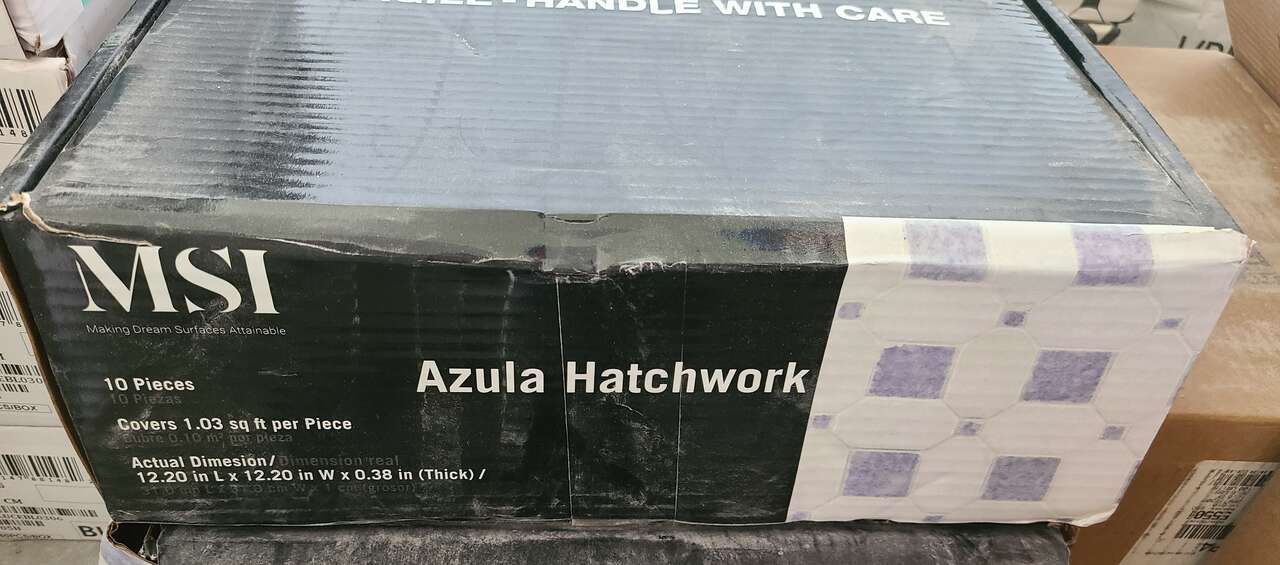 4 different kinds of tile for sale leftover from new home construction. Azula Hatchwork marble 12x12 square tile. Blue and white pattern. MSI brand. $10 a sheet. Have 2 boxes of 20 sheets total. $200 for all 20 sheets. Would make a great backsplash design. Emser Lucente Blanc 3x6 glass tile. Have 6 boxes totaling 50 Sq ft. 60 tiles in a box. $100 a box. MSI Arctic White 3x6 subway tiles. Have 3.5 boxes. 100 tiles/12.5sq ft in a box. $80 a box or $280 for everything.