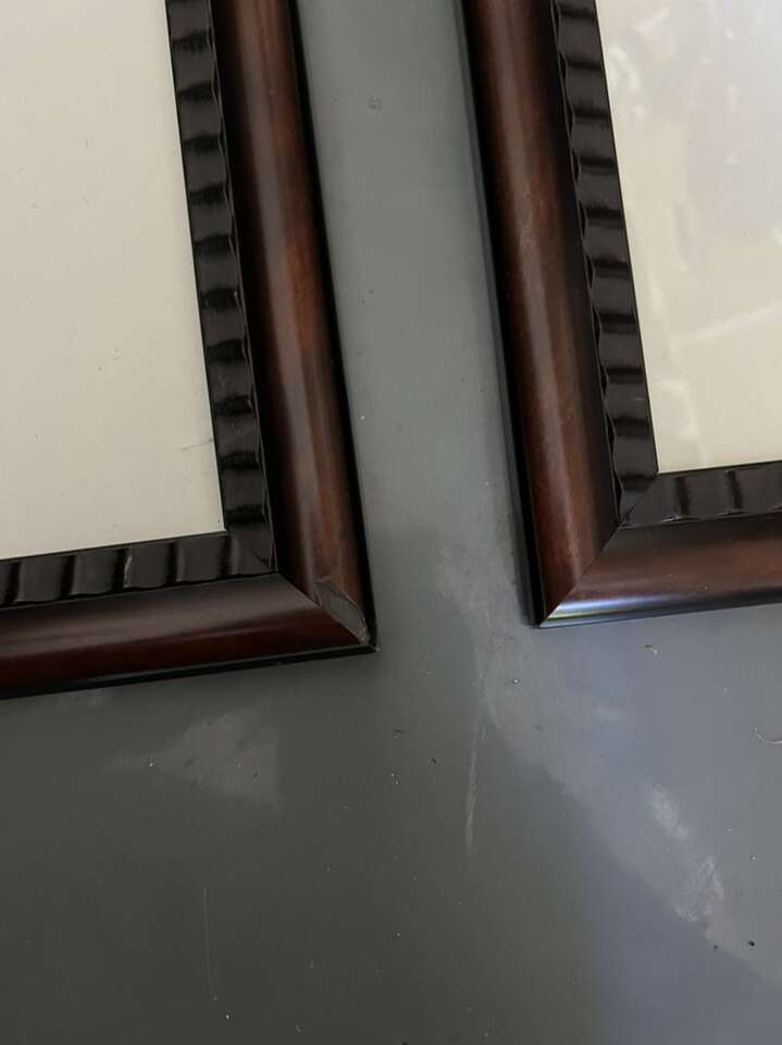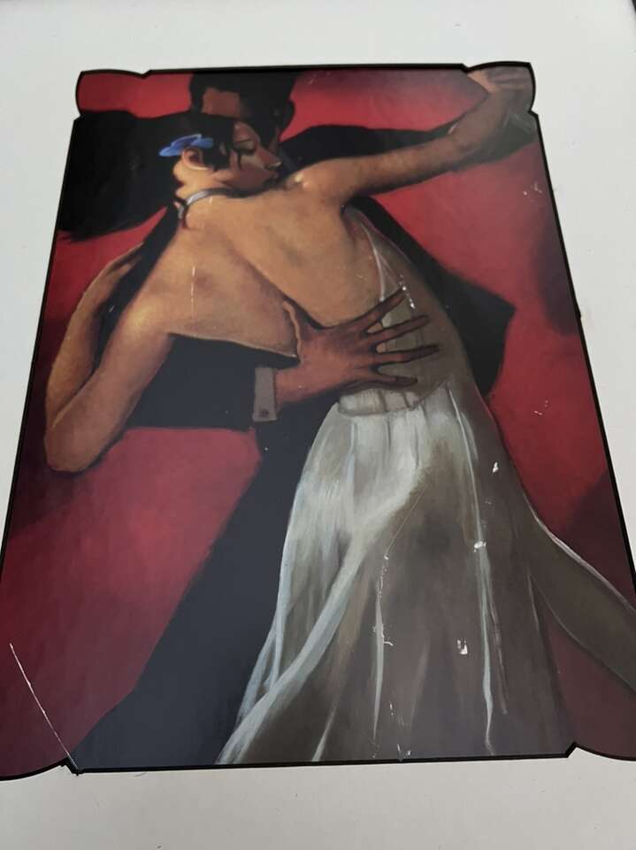 Beautiful dance prints. They have been on a few different moves so they are bit banged up. One has glass, the other doesn’t. The frames are damaged. With a little love they will be beautiful again. Price for set.
