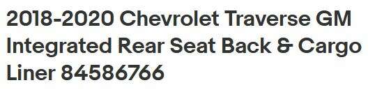 Chevrolet Traverse 2018+ Integrated Rear Seat Back and Cargo Liner CASH ONLY