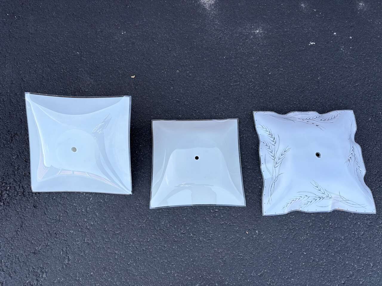 Most of the traditiinal sized square shades are $20each large MCM Round are $40 each Antique, ribbed thick glass shades are $20 each