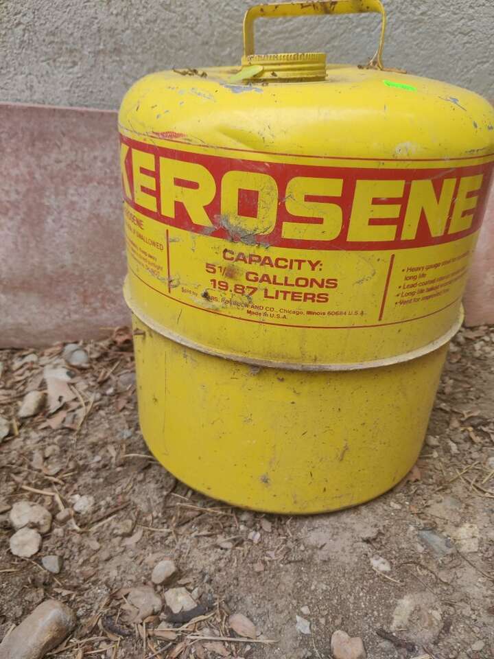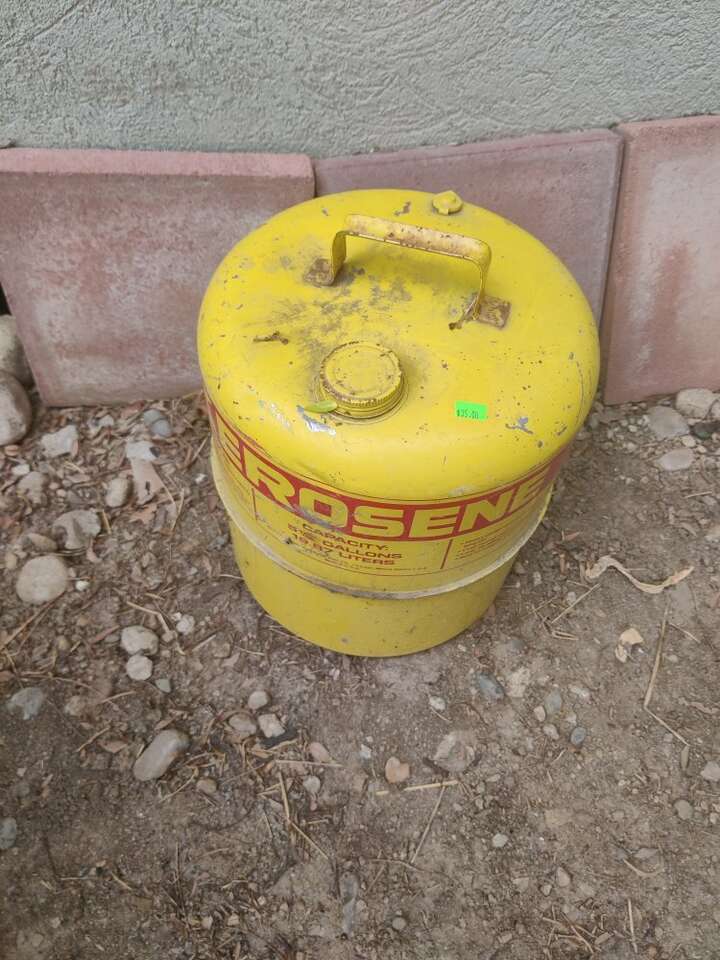 This is an old Kerosene Can. Vintage Would look great as a display in your garage or Man Cave. Can use some cleaning Pretty sure it's still usable,.