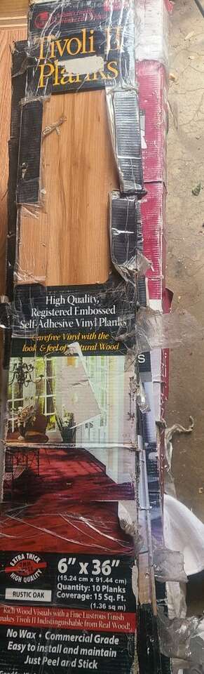 Cash only (1) Box Text 801.510.7404 Family Estate Sale Tivoli II Planks, Rustic oak-Set (still in box) Self adhesive Vinyl Planks 6x36 10 Planks 15 square feet Good for Kitchen/Bathroom/Basement