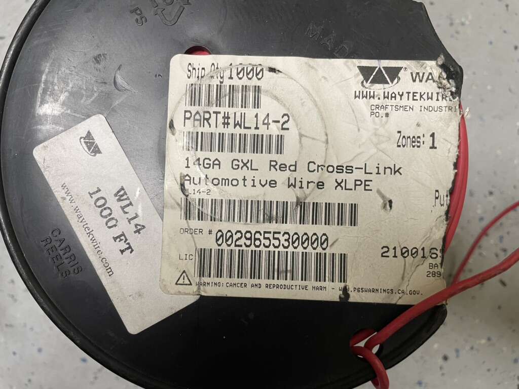 Description- 1000’ Spool of 14 AWG GXL red cross-link automotive wire XLPE. See photos for more product information and specifications.